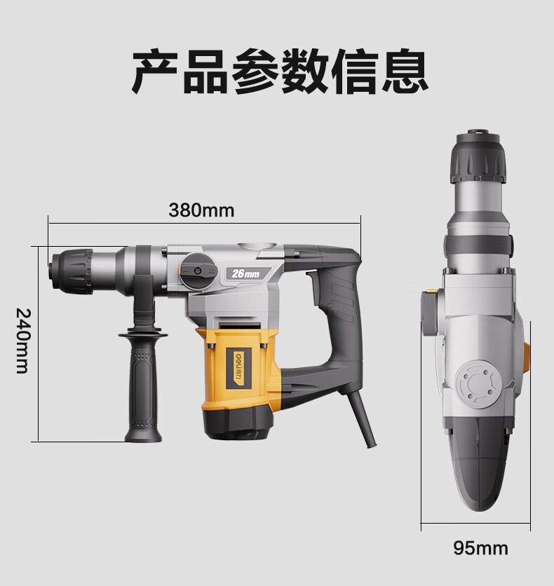 五金/工具  > 电动工具  > 电动工具套装  >  得力/deli  >  得力(deli)双功能重型电锤大功率冲击钻多功能电钻锤镐两用混凝土开凿套装 DL-DC26-J2/DL-DC26-S2/套