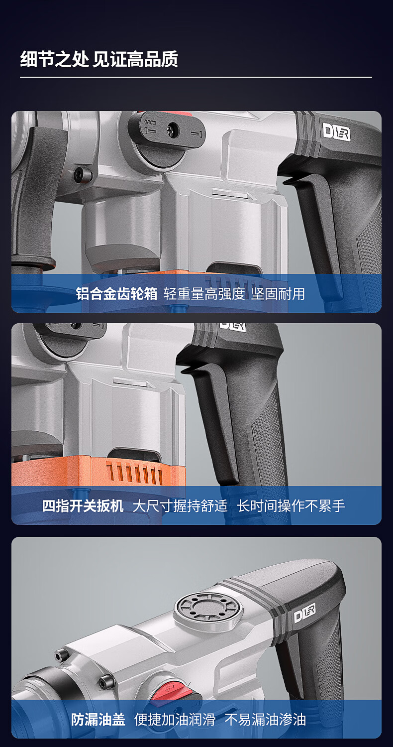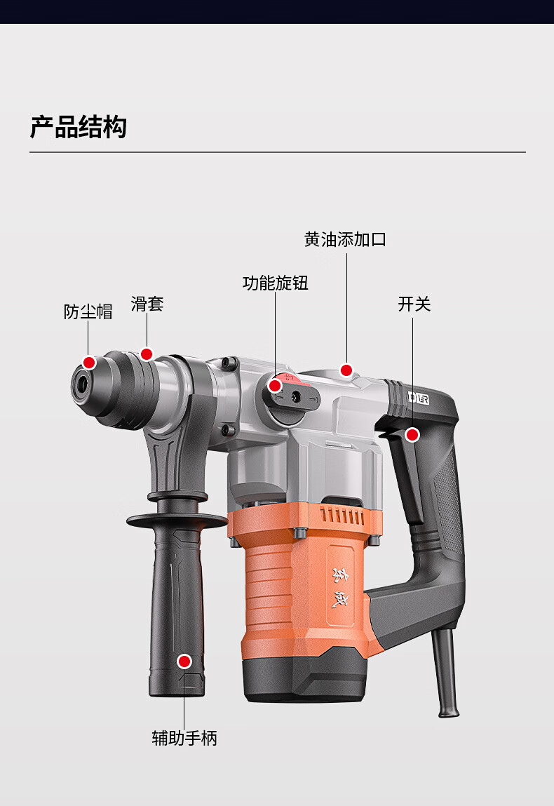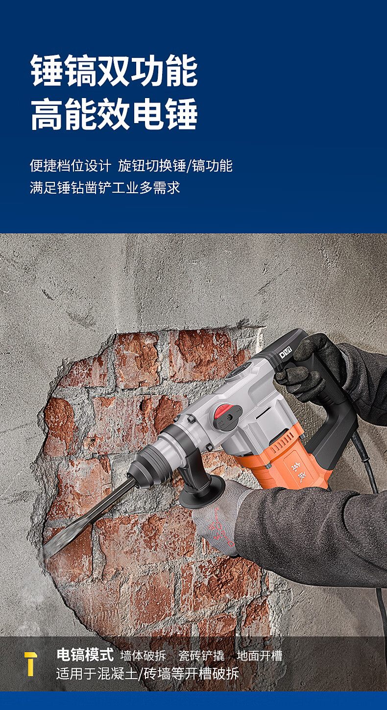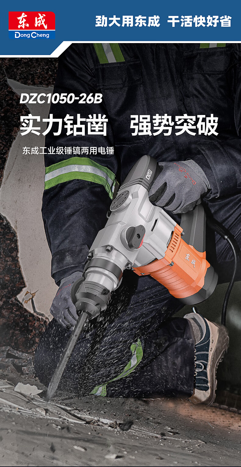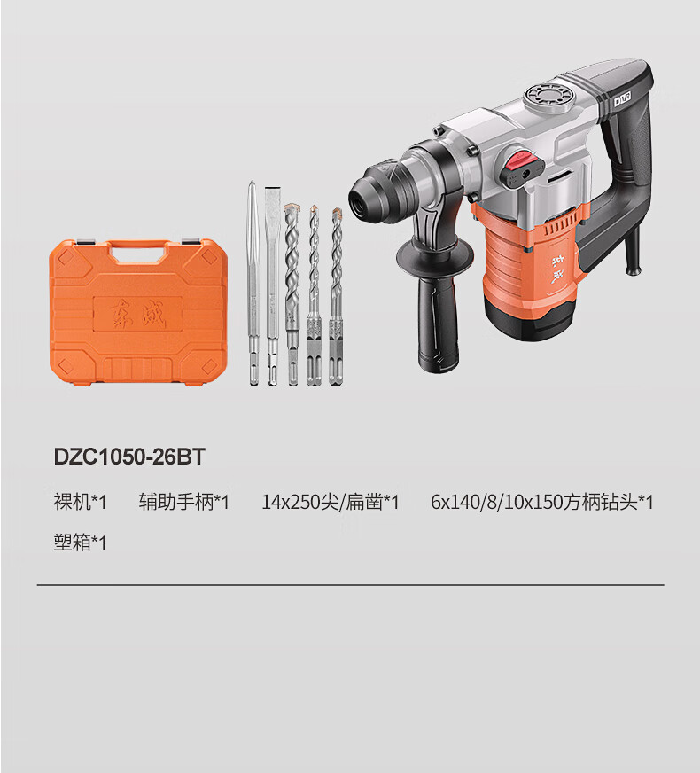 • 商品名称:东成1050W电锤电镐两用DZC1050-26BT冲击钻混凝土电钻自带安全离合 DZC1050-26BT/台