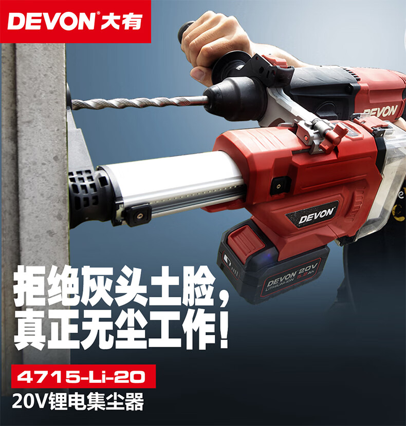 商品名称: 大有(Devon)20V集尘盒4715吸灰墙面作业集尘工业吸尘配大有电锤使用(裸机) 4715-Li-20/台