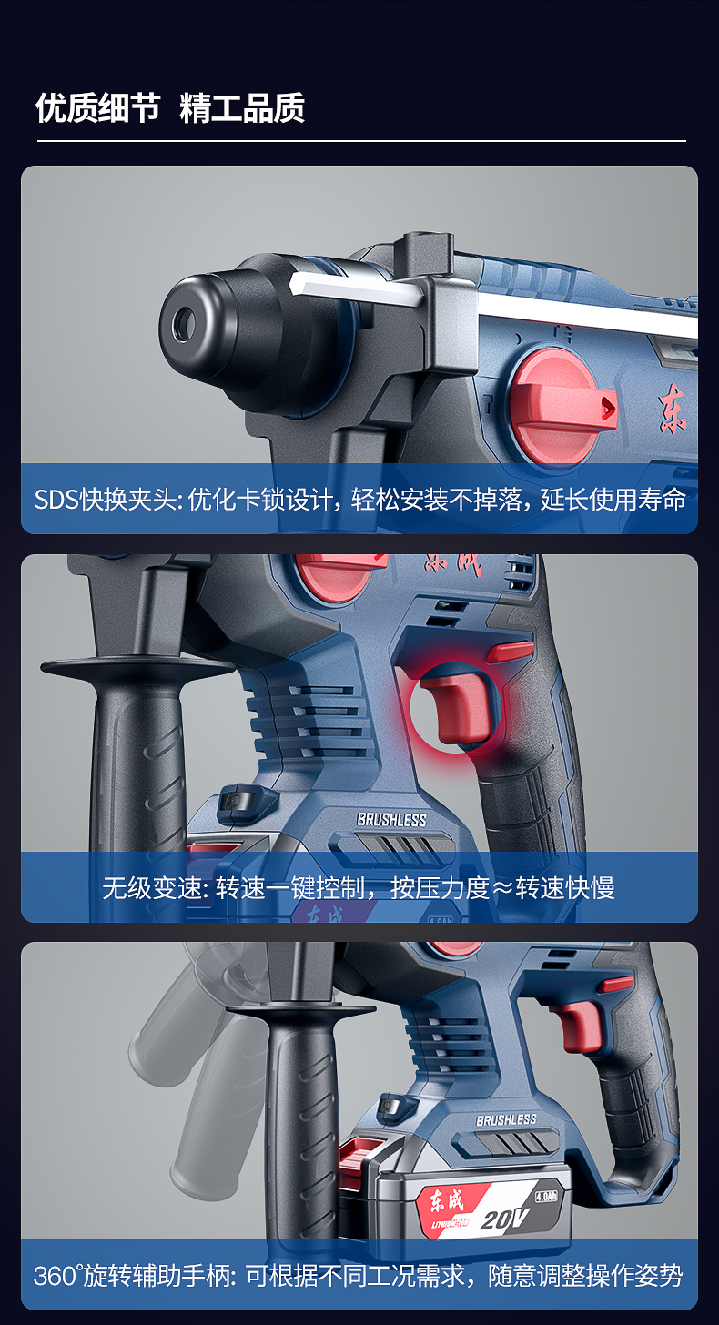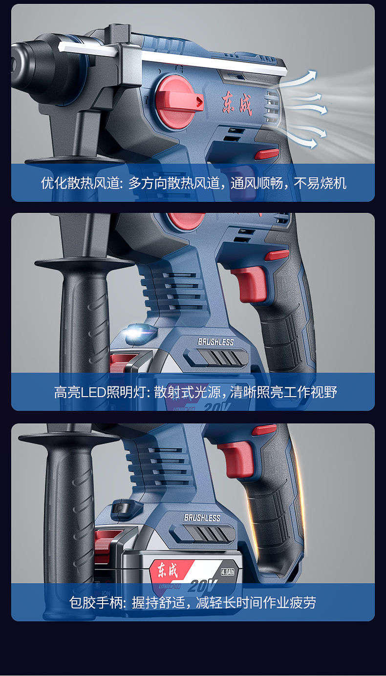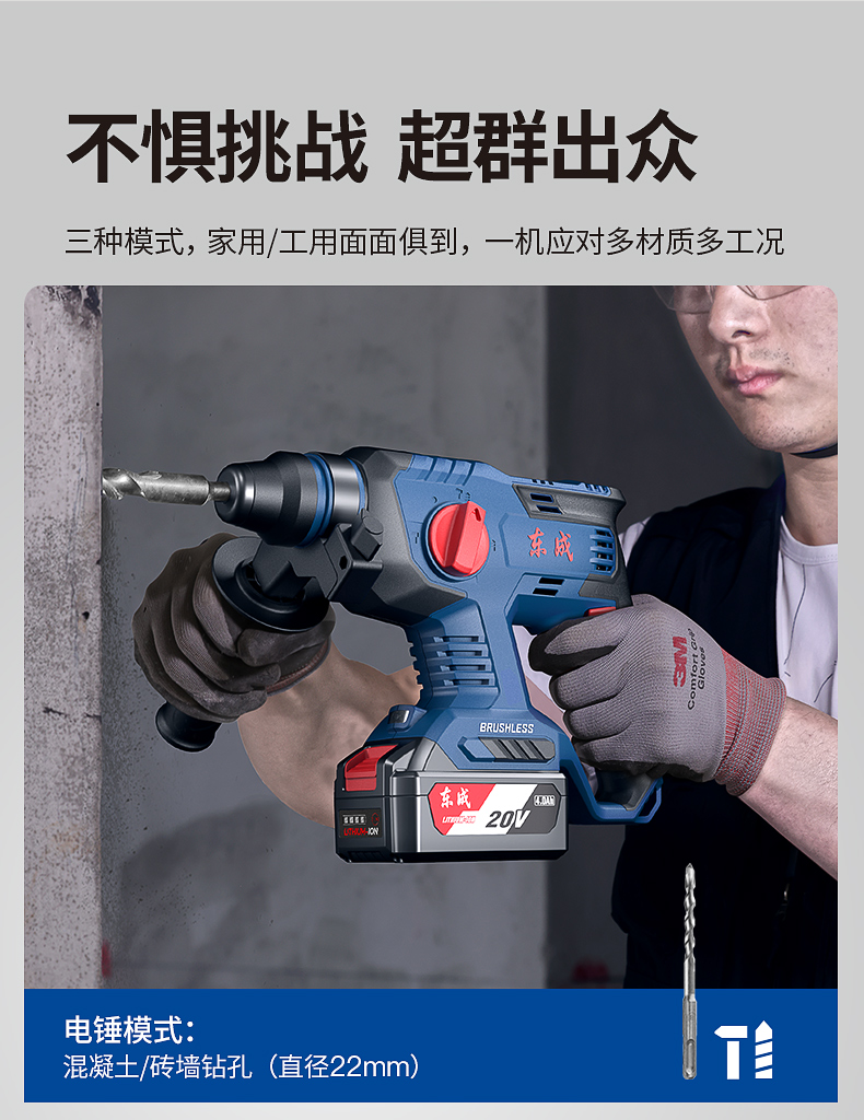 商品名称: 东成工业级无刷充电电锤WZC22S冲击钻电锤电镐电钻电动工具 WZC22S/台