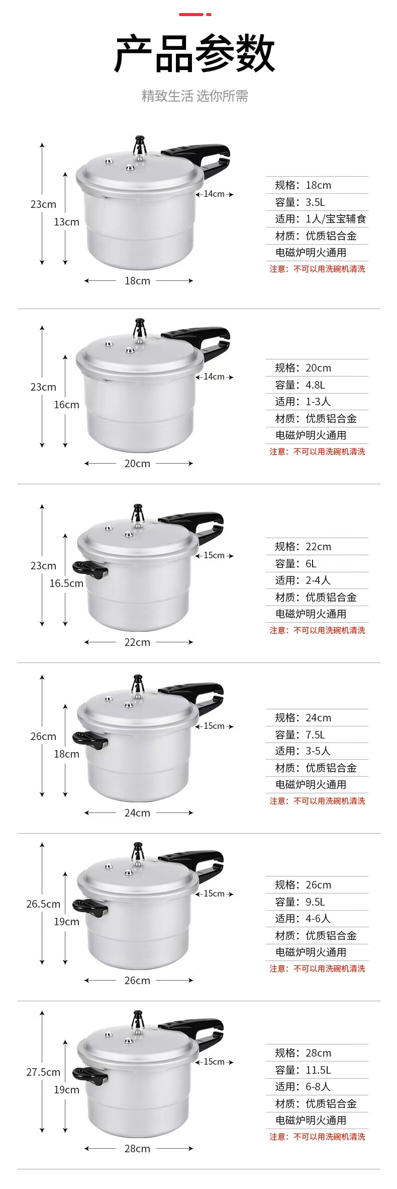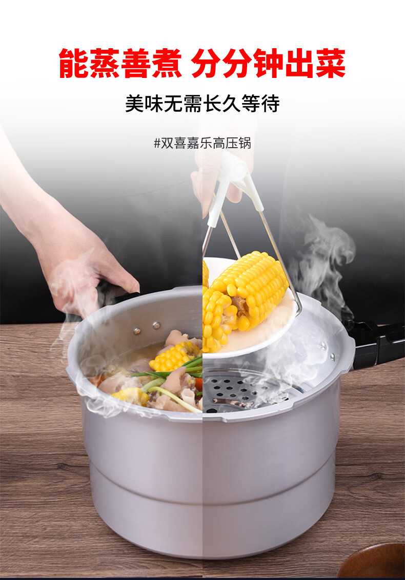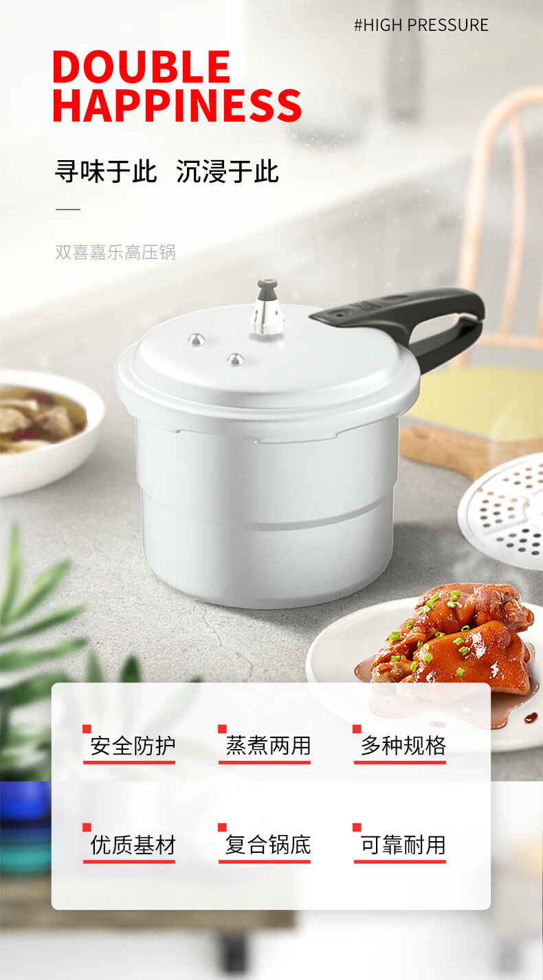 • 商品名称:双喜高压锅铝合金燃气电磁炉通用防爆家用压力锅20CM/4.8L【蒸格款】 高压锅/个