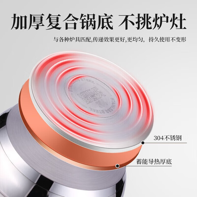 好厨夫(HOCUF)复底压力锅六重防爆高压锅燃气电磁炉通用304不锈钢高压锅-22cm 304不锈钢高压锅-22cm/个