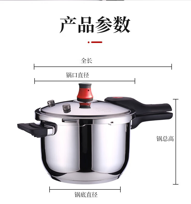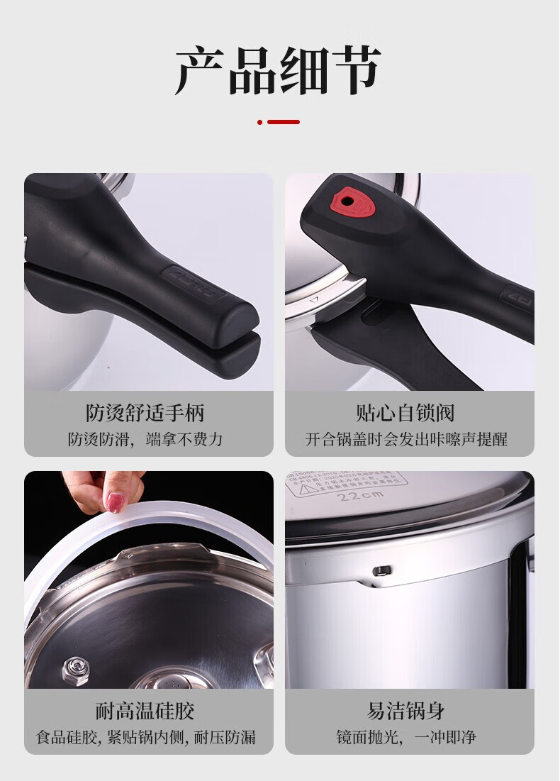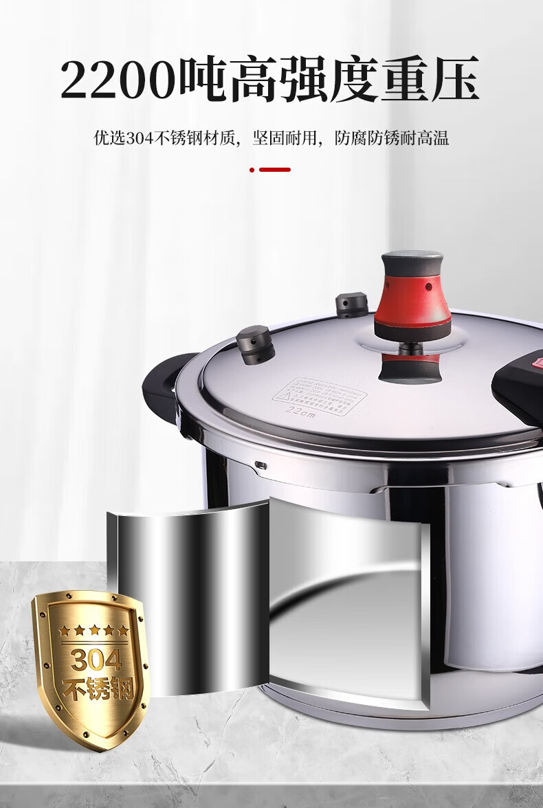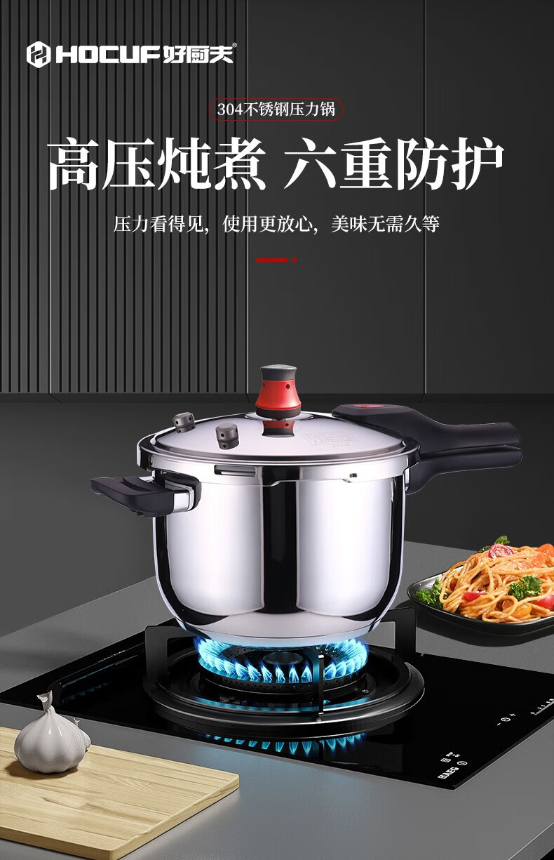 • 商品名称:好厨夫(HOCUF)复底压力锅六重防爆高压锅燃气电磁炉通用304不锈钢高压锅-22cm 304不锈钢高压锅-22cm/个