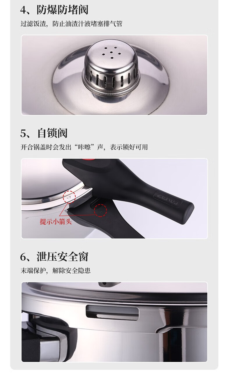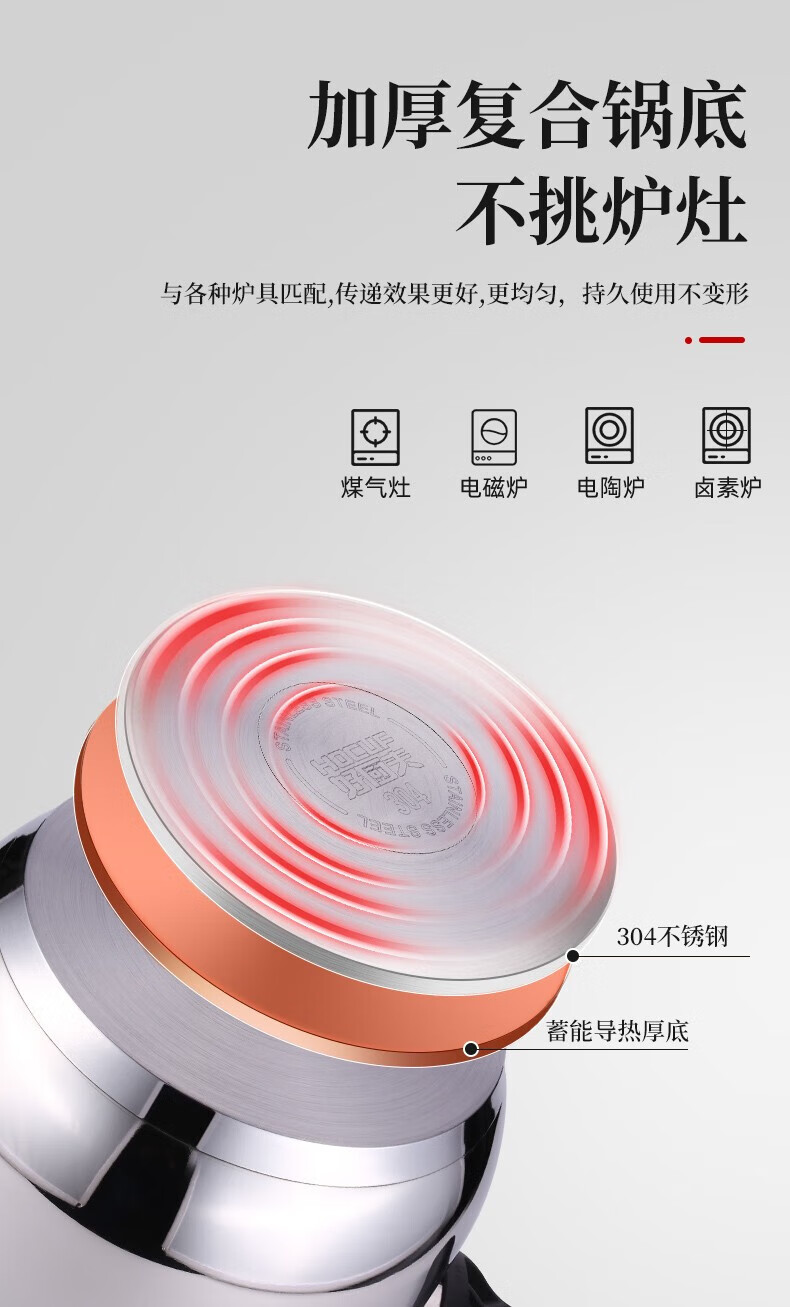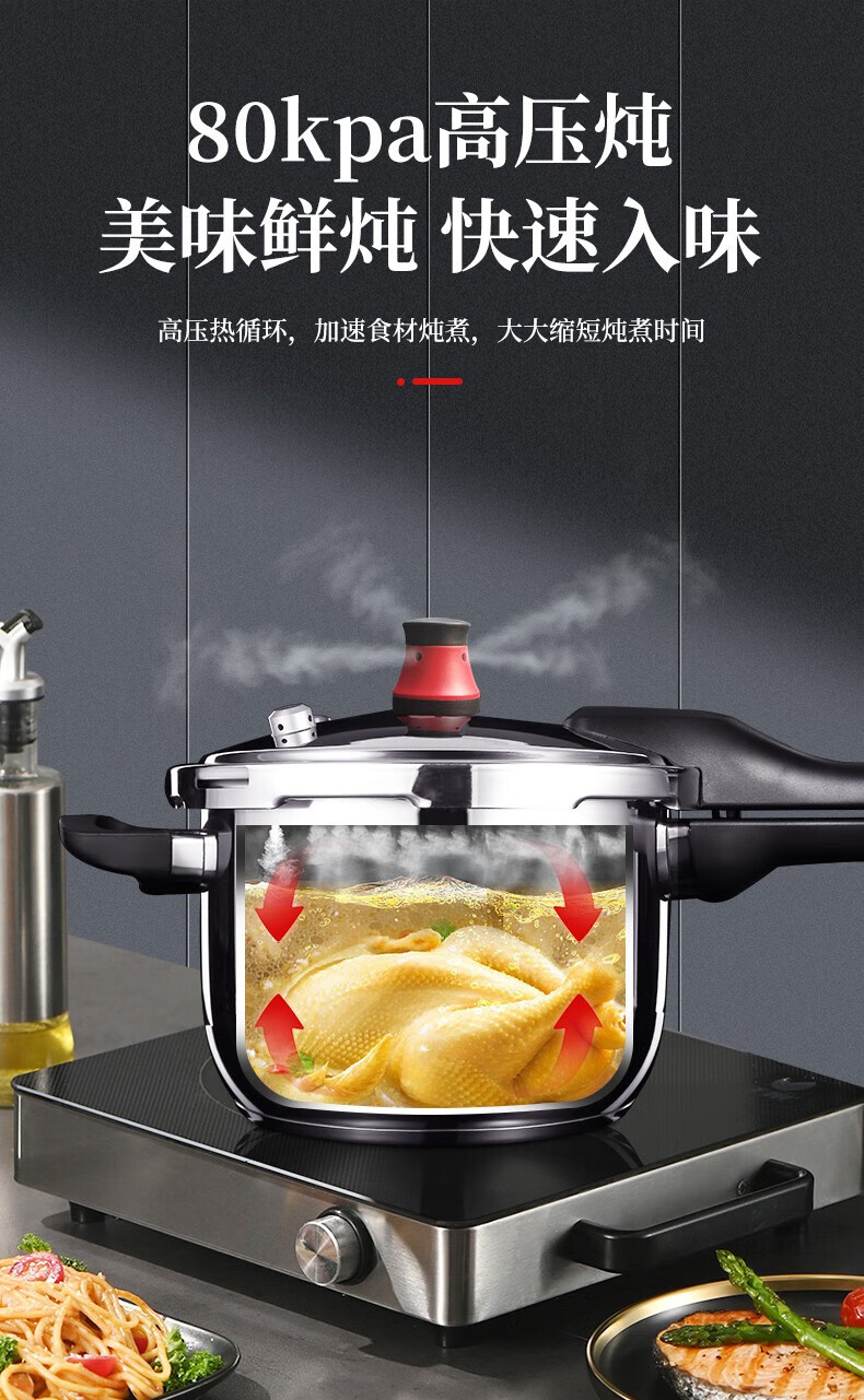 • 商品名称:好厨夫(HOCUF)复底压力锅六重防爆高压锅燃气电磁炉通用304不锈钢高压锅-22cm 304不锈钢高压锅-22cm/个