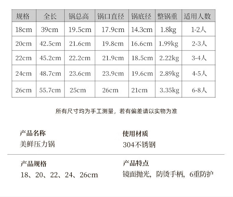 包装清单: 304不锈钢高压锅-22cm *1