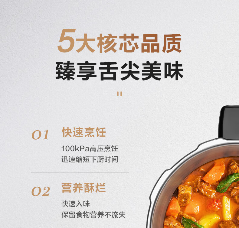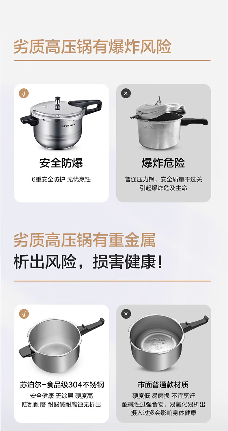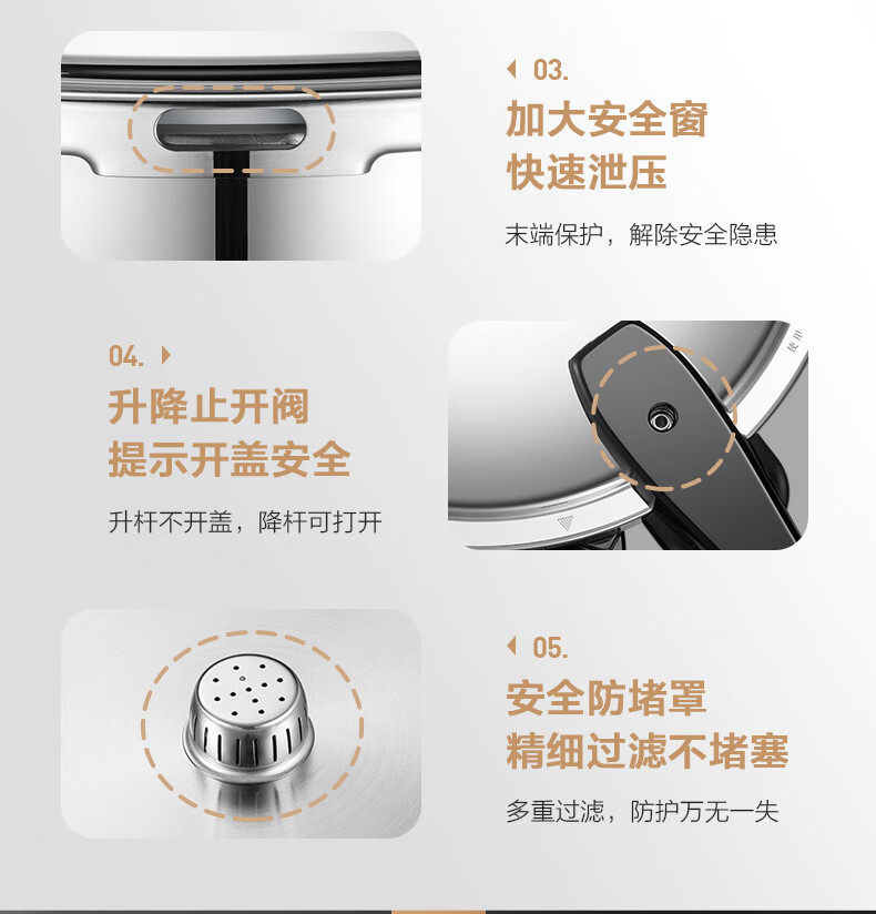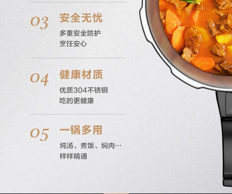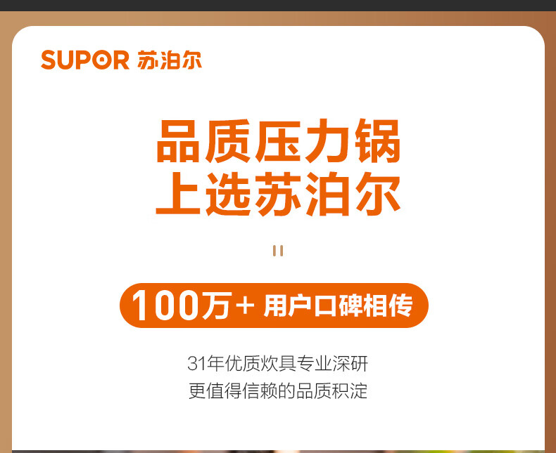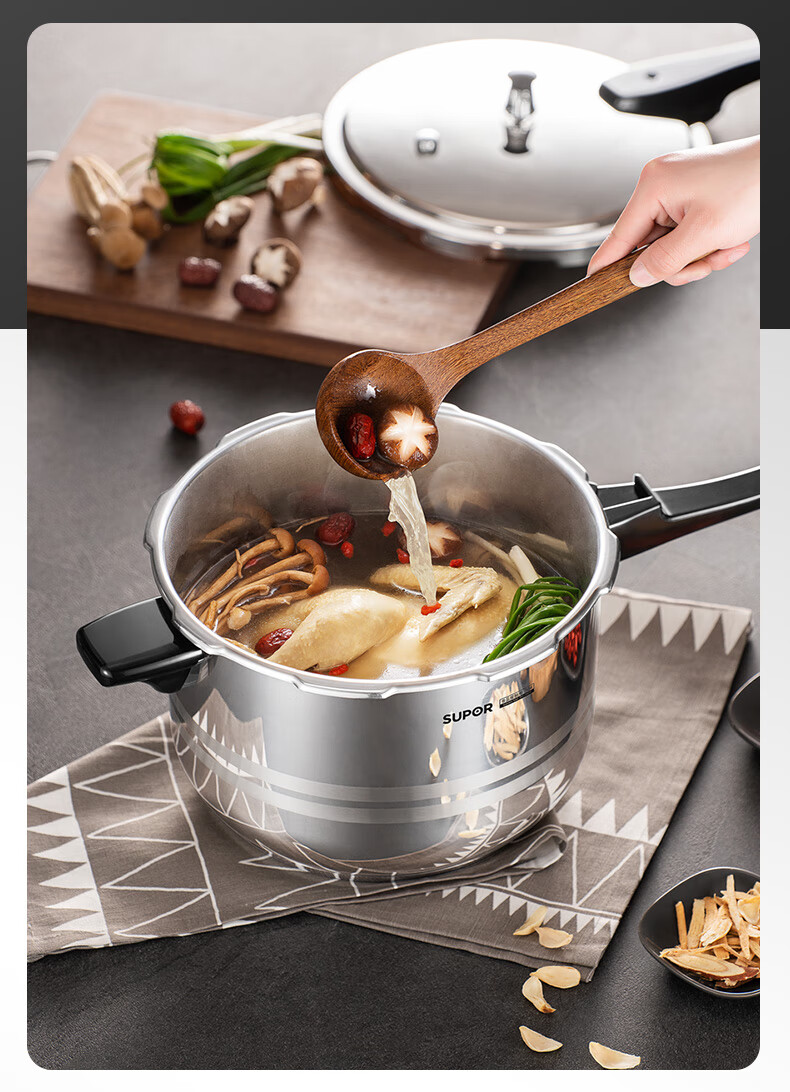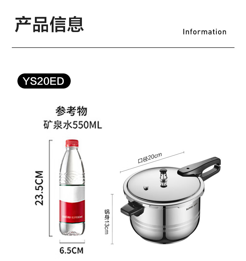 • 商品名称:苏泊尔(SUPOR)304不锈钢5.2L压力锅22cm【2-4人适用】快煮防爆高压锅电磁炉通用 22cm好帮手不锈钢压力锅YS22ED/个