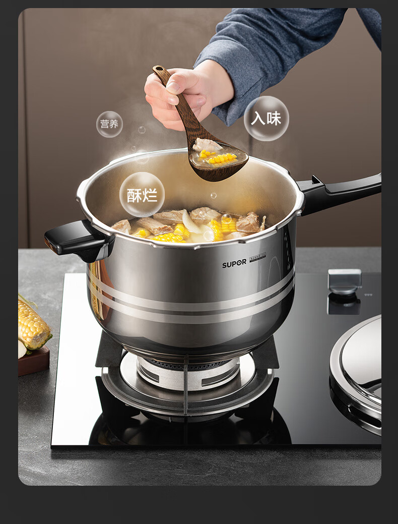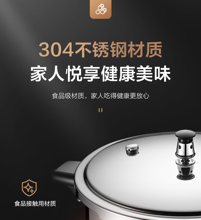 厨具  > 烹饪锅具  > 高压锅  >  苏泊尔/SUPOR  >  苏泊尔(SUPOR)304不锈钢5.2L压力锅22cm【2-4人适用】快煮防爆高压锅电磁炉通用 22cm好帮手不锈钢压力锅YS22ED/个