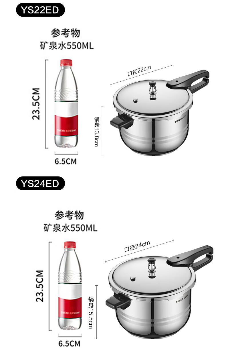 苏泊尔(SUPOR)304不锈钢5.2L压力锅22cm【2-4人适用】快煮防爆高压锅电磁炉通用 22cm好帮手不锈钢压力锅YS22ED/个