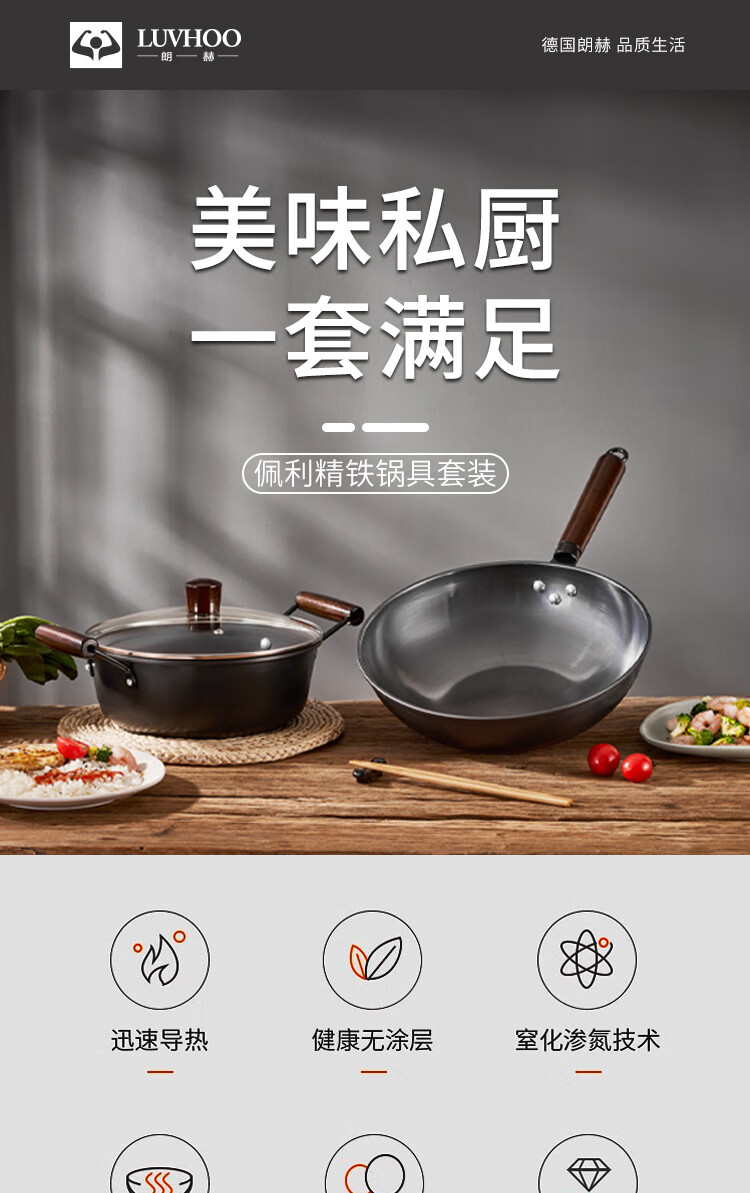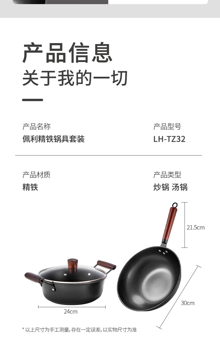 • 商品名称:LUVHOO佩利精铁锅具套装 LH-TZ32 炒锅30cm+汤锅24cm LH-TZ32/套