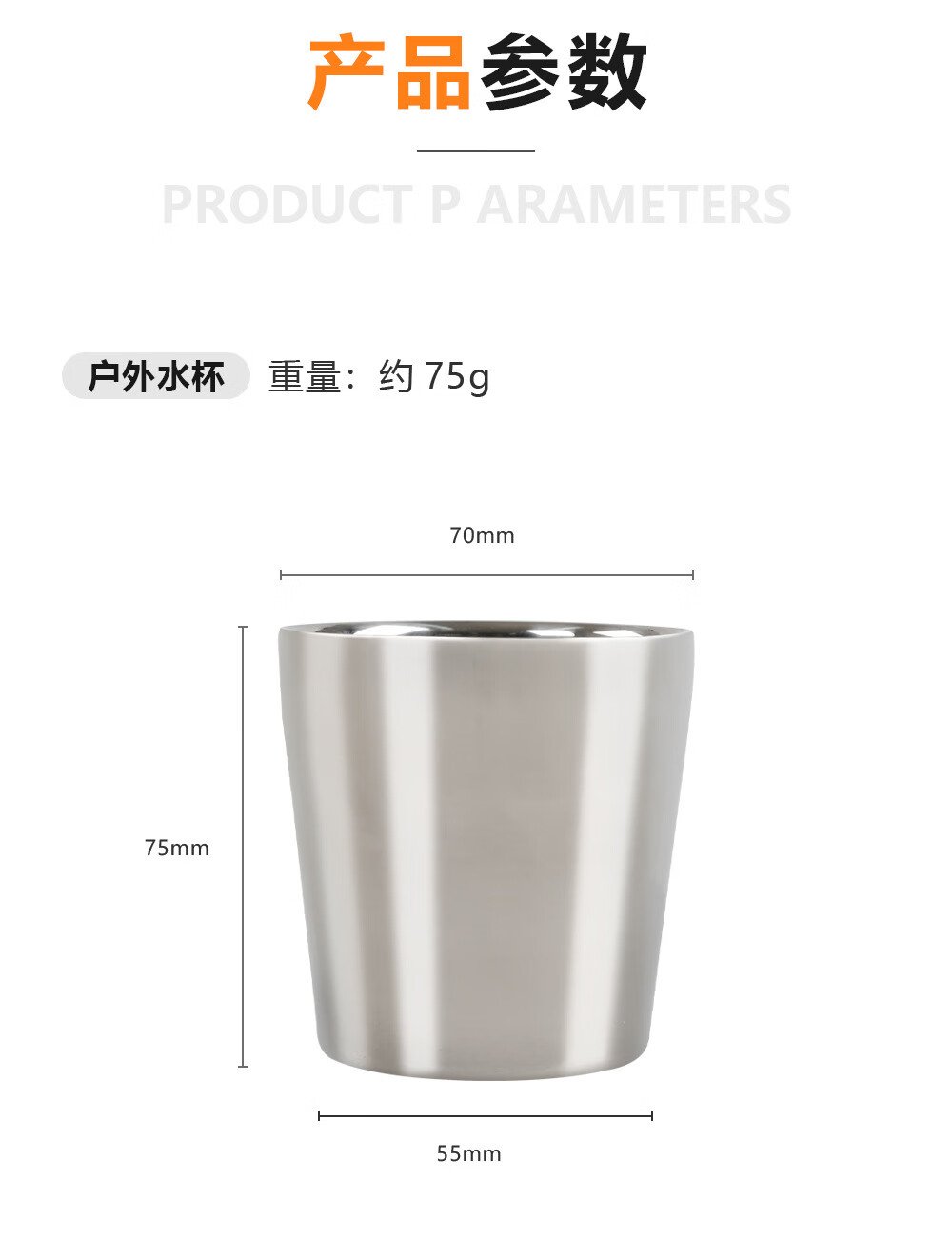 商品名称: 悍路 户外野营双层不锈钢水杯便携咖啡杯露营酒杯哑光饮水杯- 银色 饮水杯/个