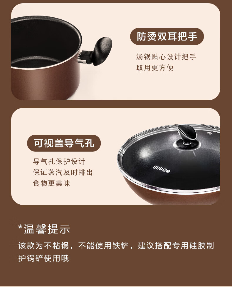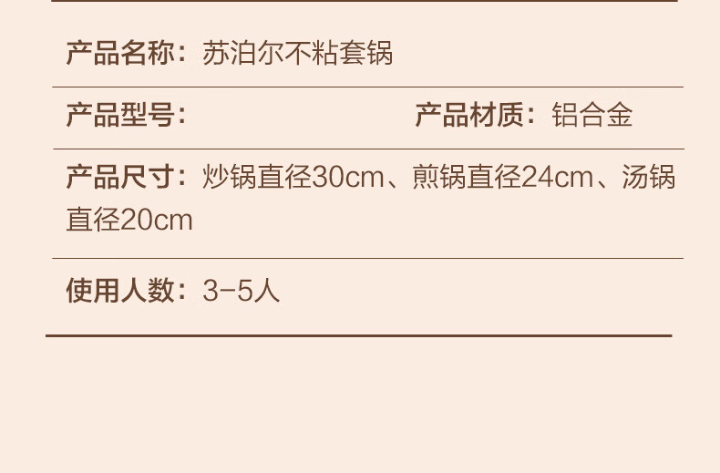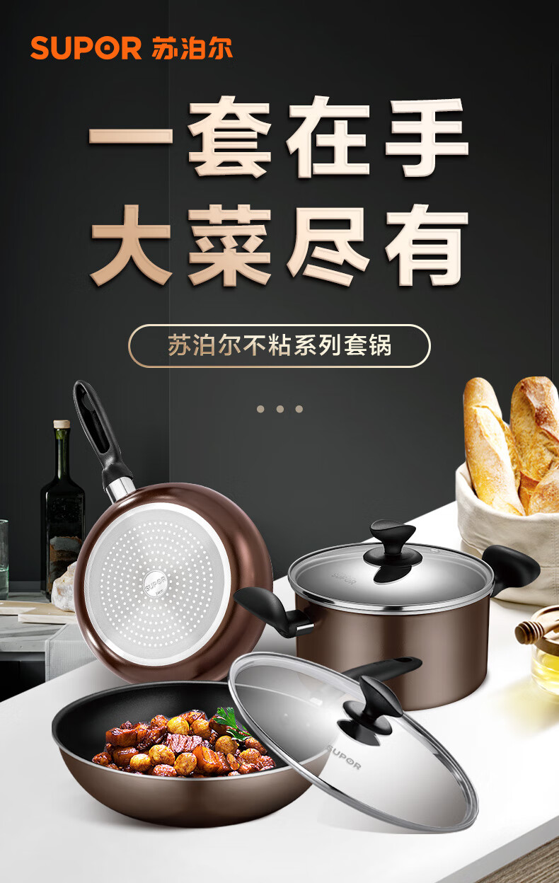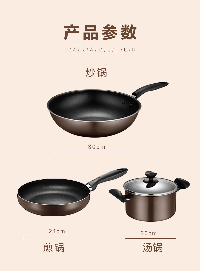 • 商品名称:苏泊尔SUPOR 锅具套装不粘炒锅煎锅汤锅三件套磁炉通用TP1905E 套装锅/个
