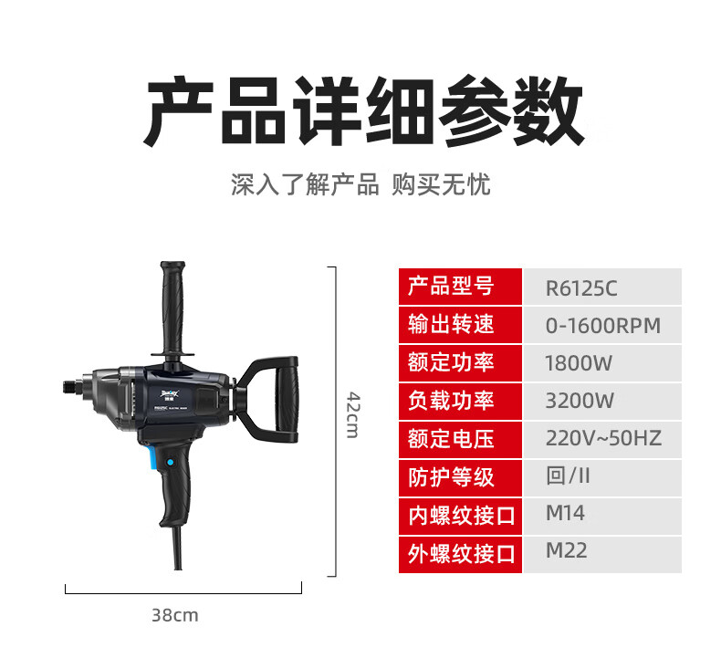 商品名称: 博来水钻搅拌机腻子水泥搅灰机电动搅拌器飞机钻 6125/台