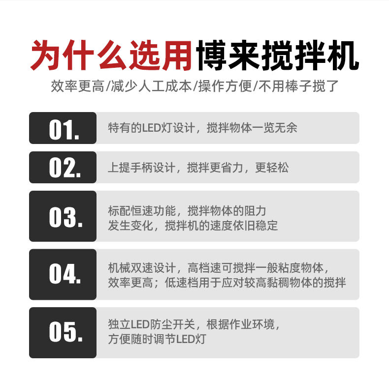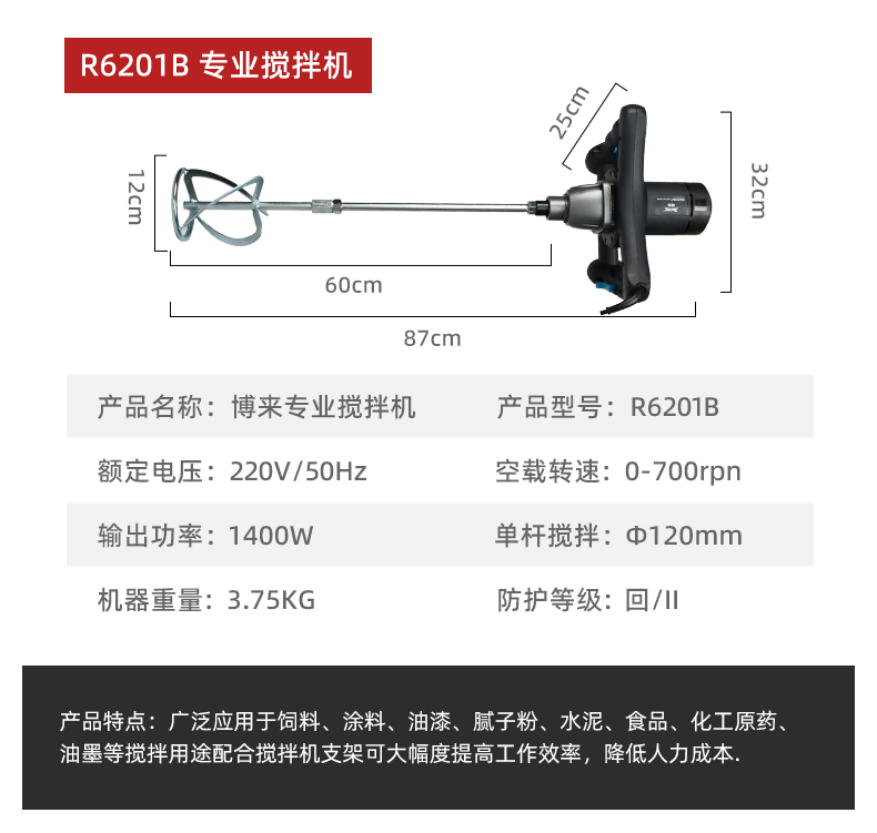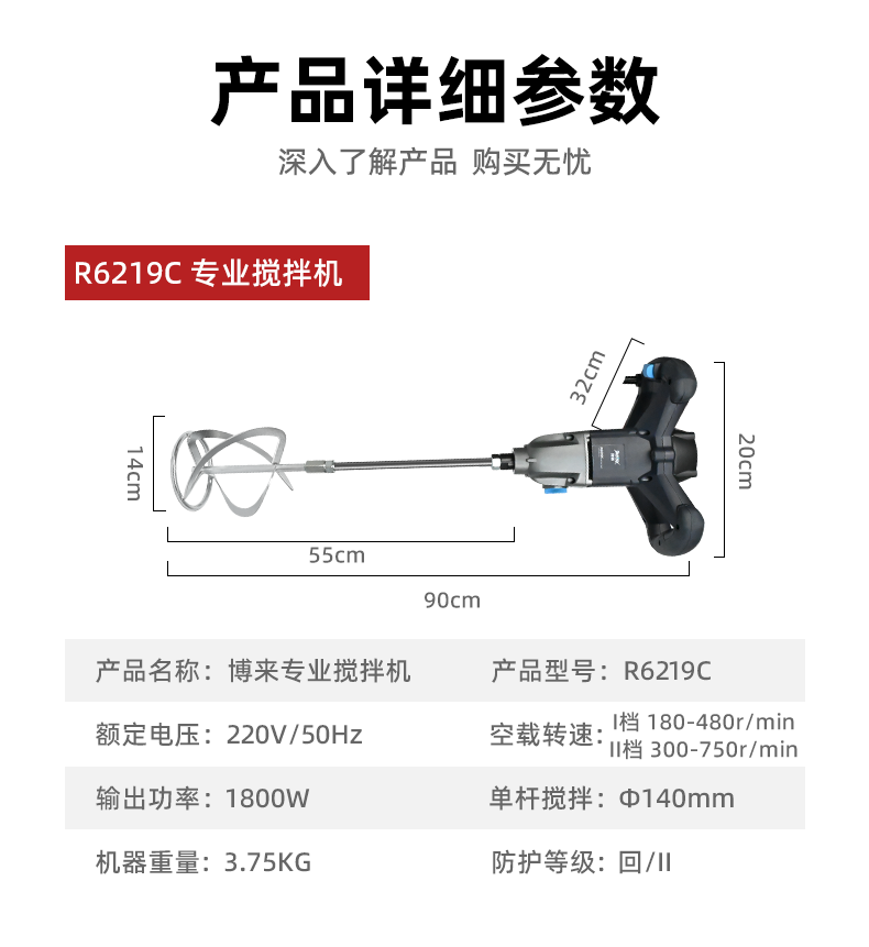 • 商品名称:博来腻子搅拌机工业级电动搅拌器腻子水泥混凝土饲料打灰机 6219/台