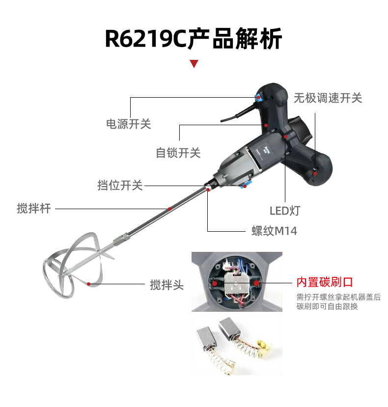 商品名称: 博来腻子搅拌机工业级电动搅拌器腻子水泥混凝土饲料打灰机 6219/台