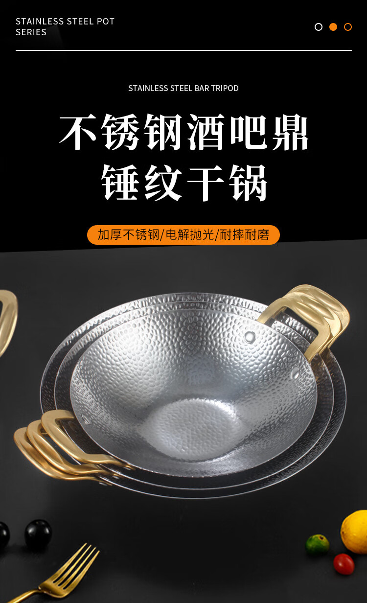 • 商品名称:希耀 不锈钢加厚雪花锅干锅锤纹双耳小火锅定制 8寸雪花酒吧锅银色 8寸雪花酒吧锅银色/个