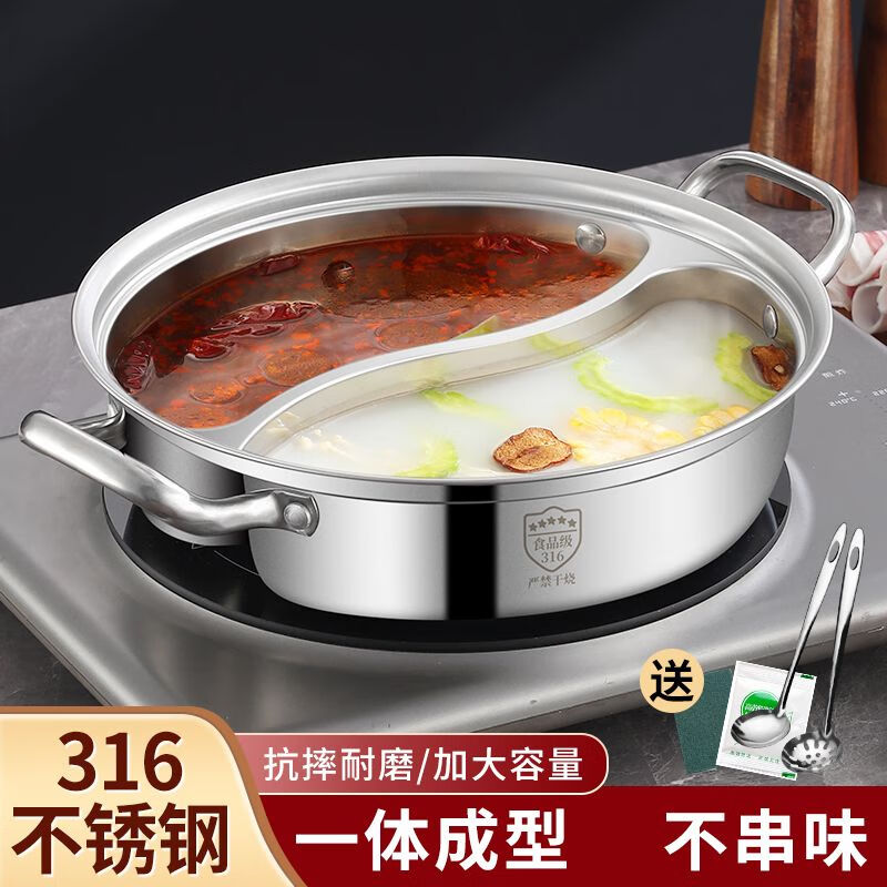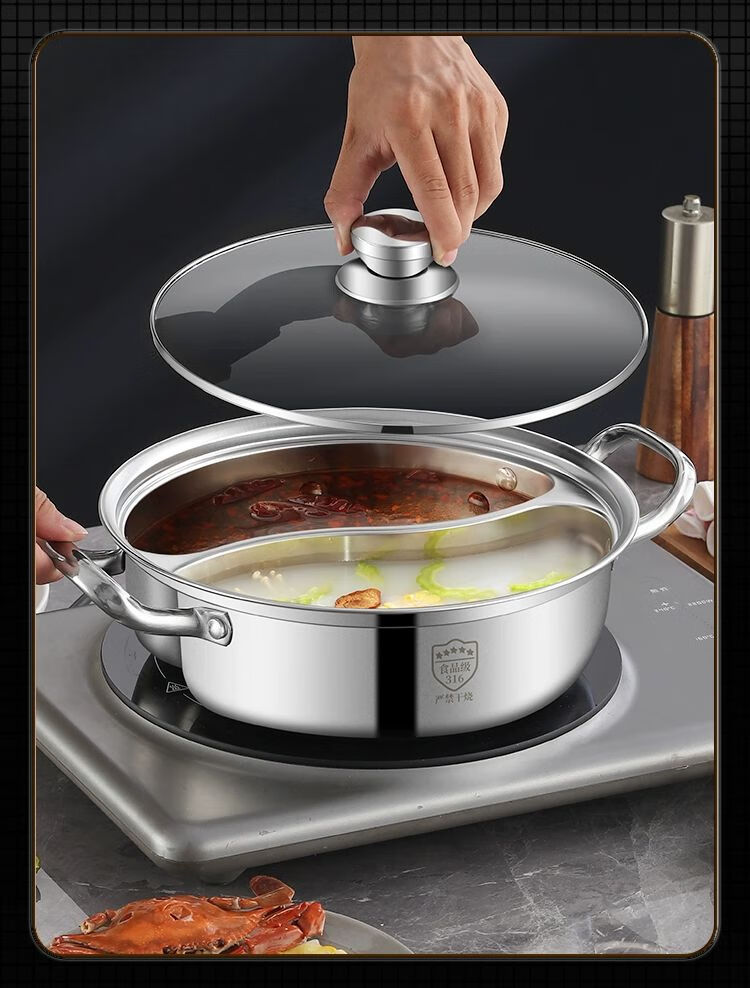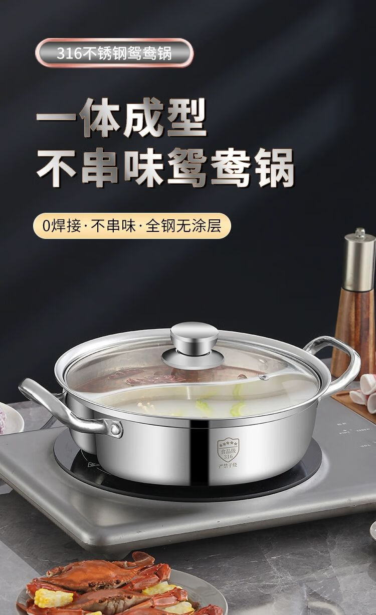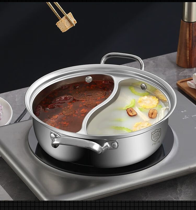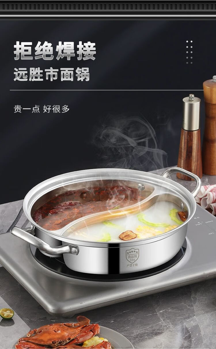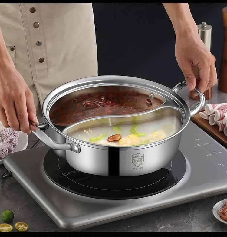 • 商品名称:靓厅316不锈钢鸳鸯锅电磁炉专用鸳鸯火锅锅家用火锅盆一体成型大 一体成型34cm(适合8-10人)/个