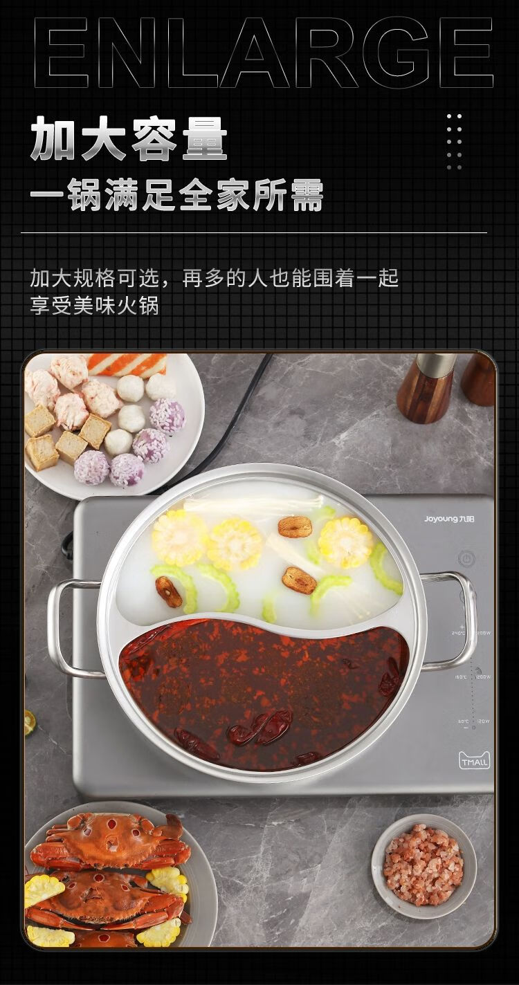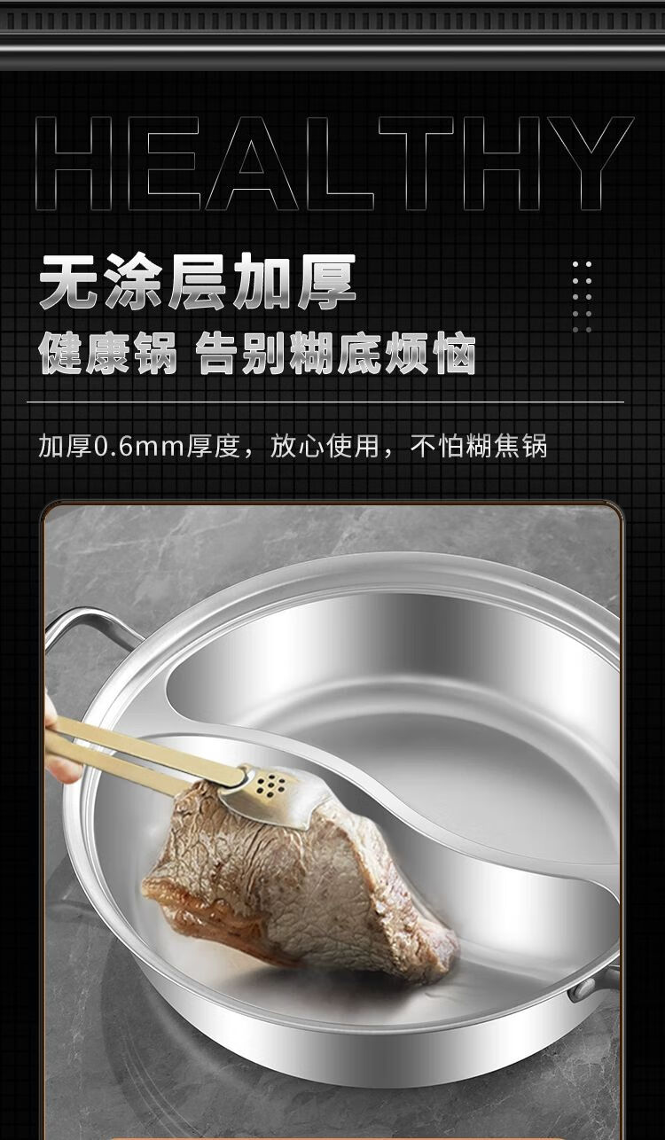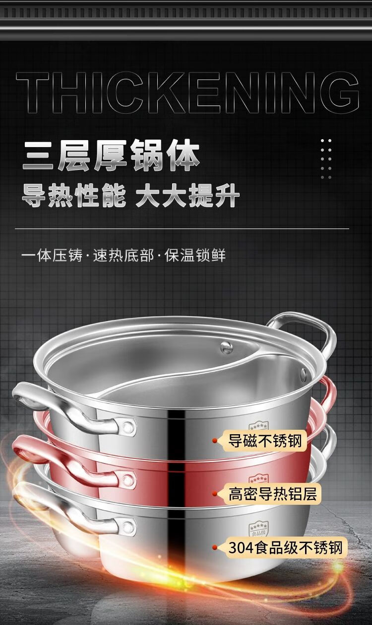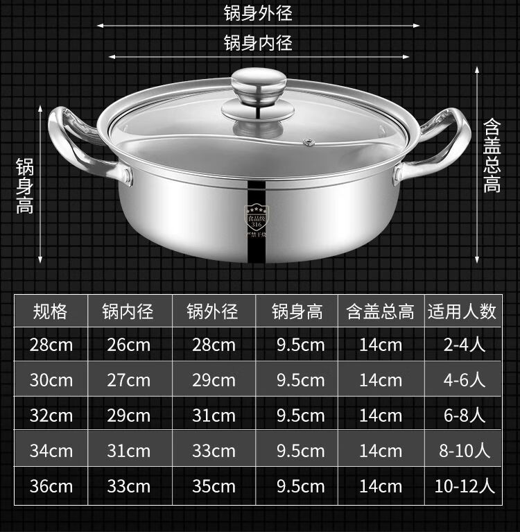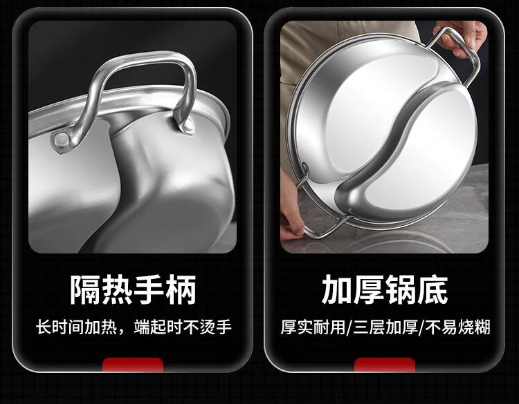 • 商品名称:靓厅316不锈钢鸳鸯锅电磁炉专用鸳鸯火锅锅家用火锅盆一体成型大 一体成型34cm(适合8-10人)/个