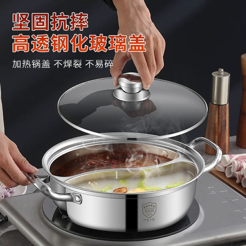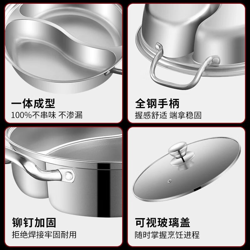 商品名称: 靓厅316不锈钢鸳鸯锅电磁炉专用鸳鸯火锅锅家用火锅盆一体成型大 一体成型34cm(适合8-10人)/个