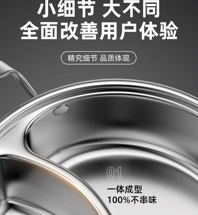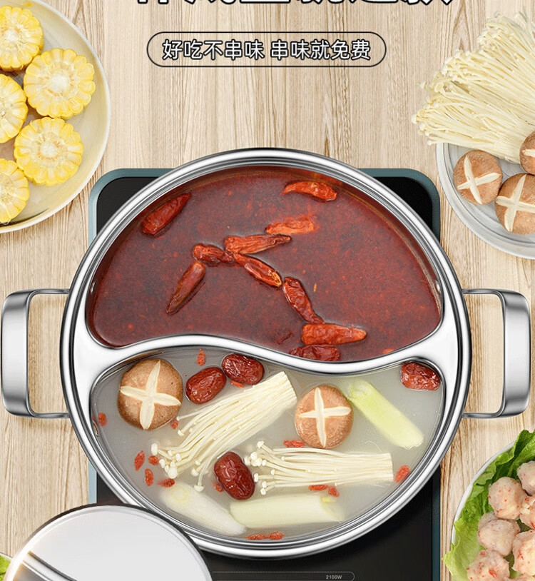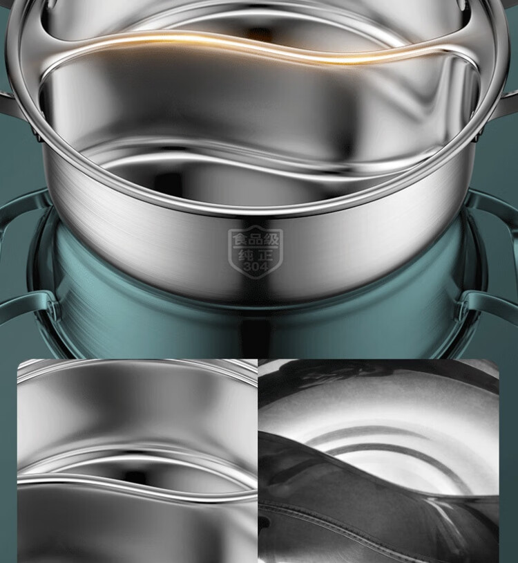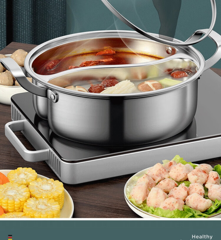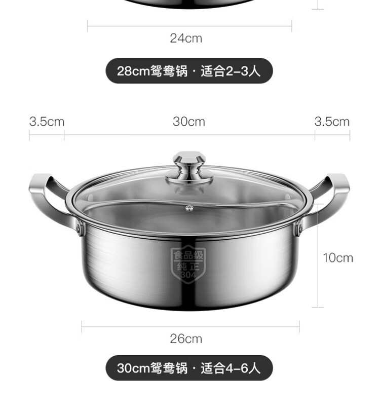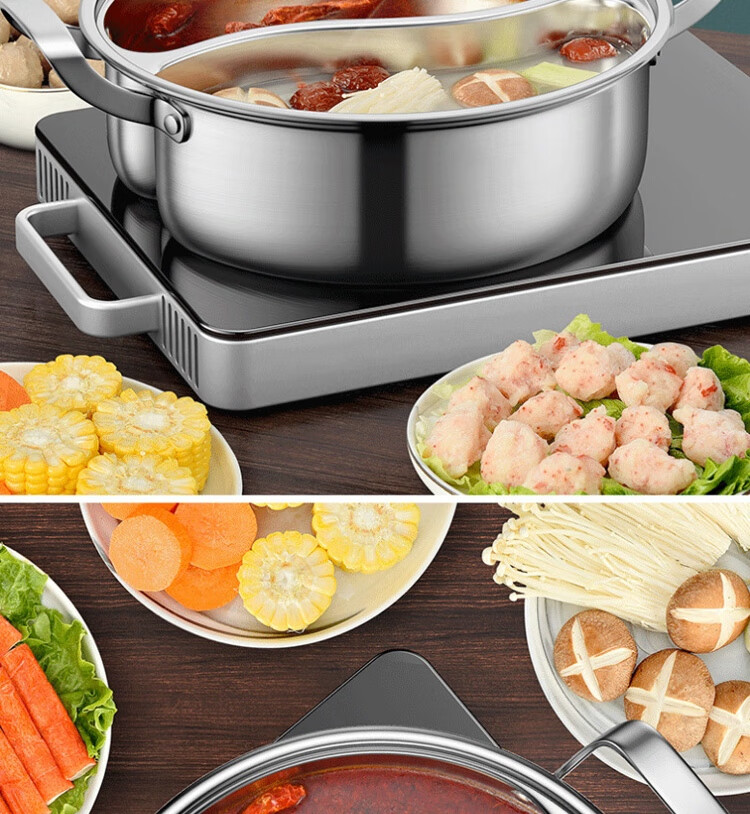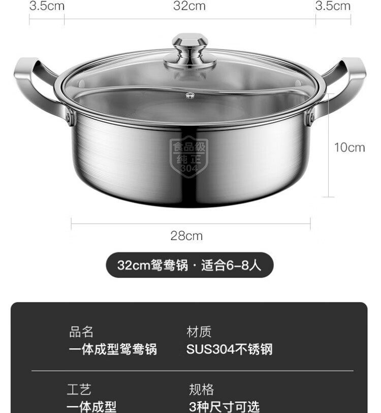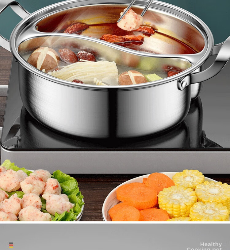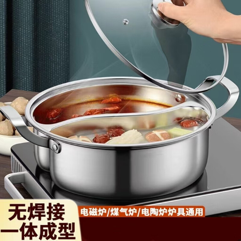 • 商品名称:敏奈 304不锈钢鸳鸯锅加厚双耳汤锅分格火锅家用两味一体成型 34cm+盖 鸳鸯锅/组