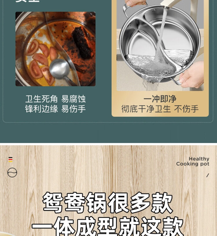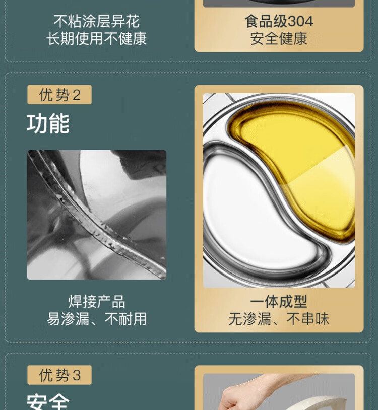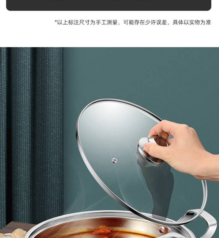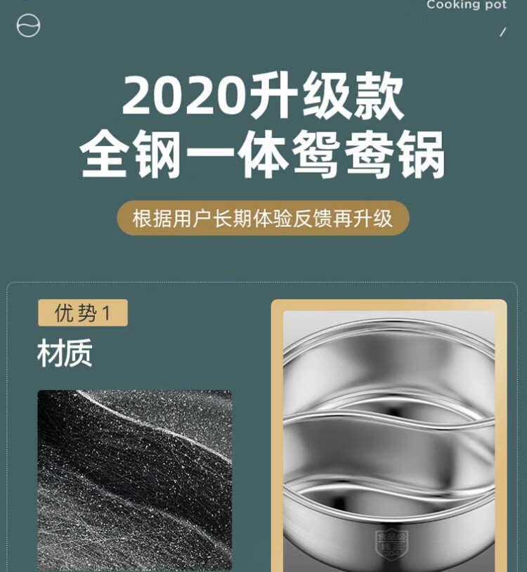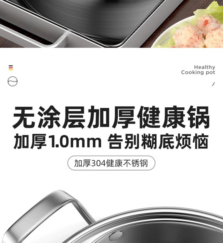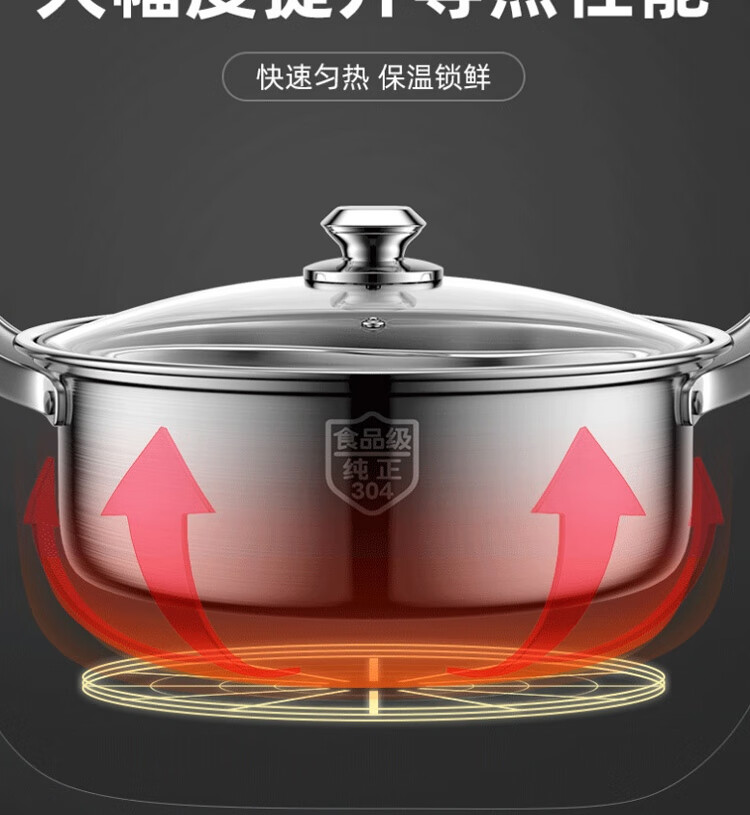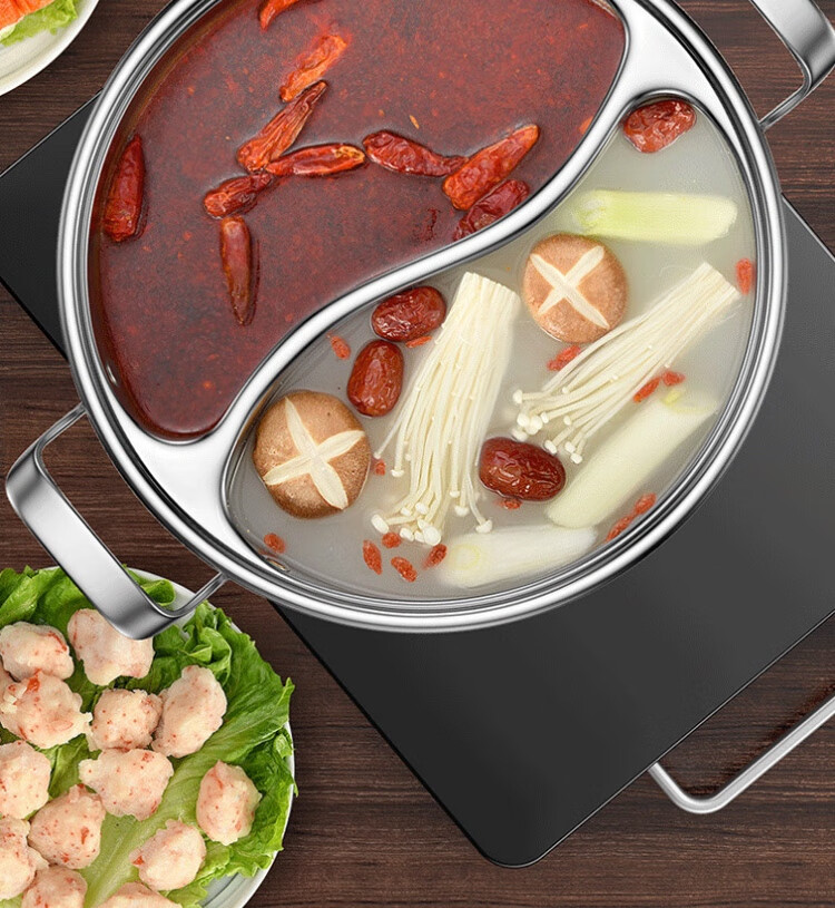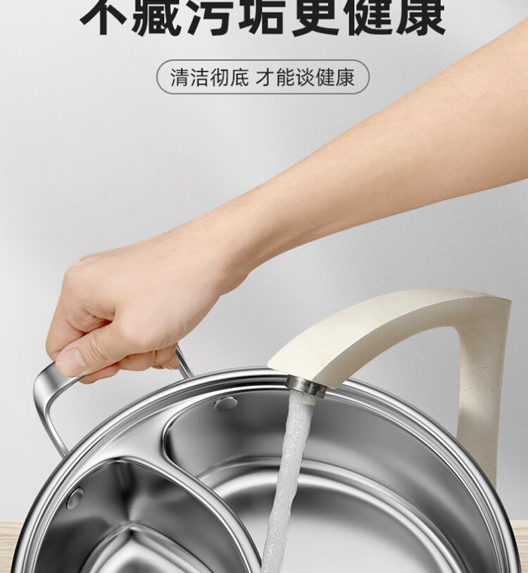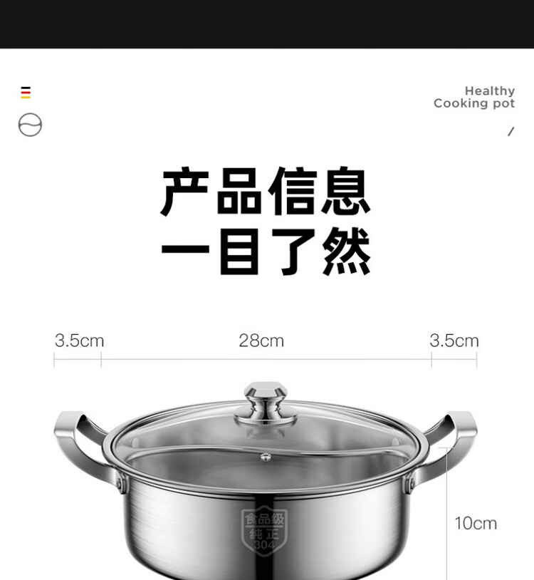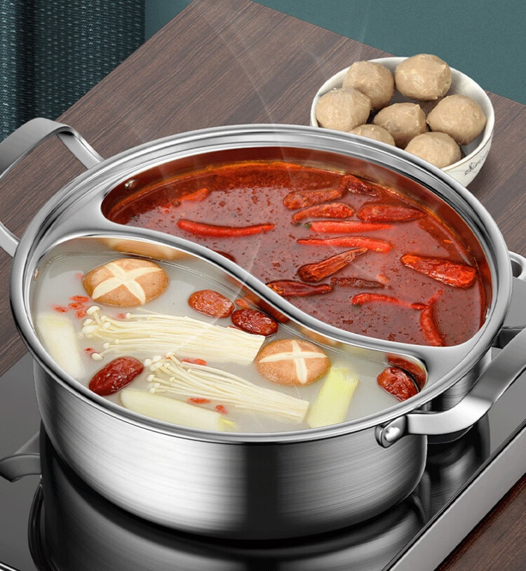 • 商品名称:敏奈 304不锈钢鸳鸯锅加厚双耳汤锅分格火锅家用两味一体成型 34cm+盖 鸳鸯锅/组