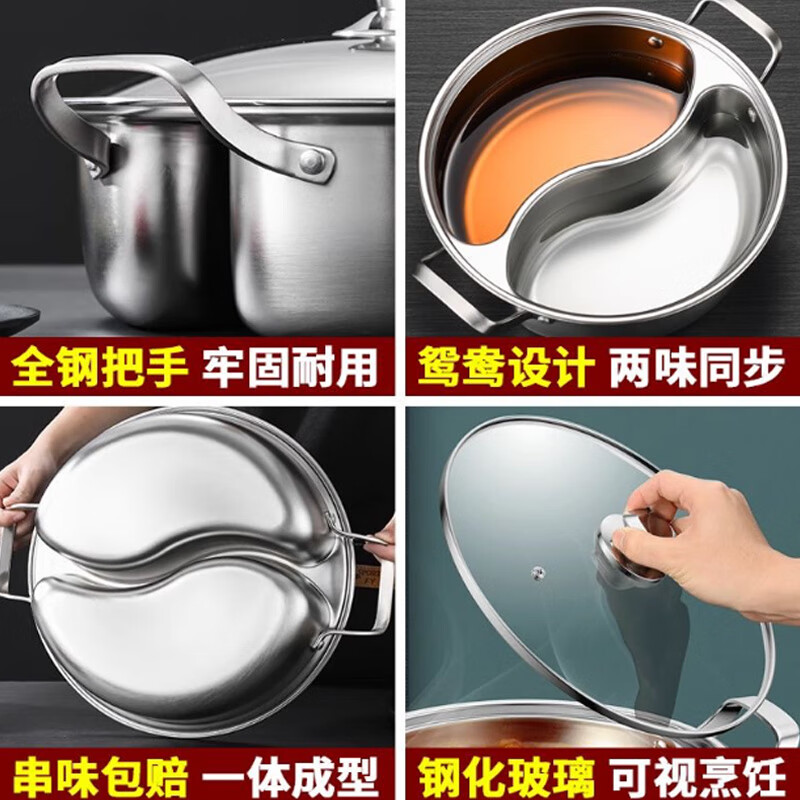 商品名称: 敏奈 304不锈钢鸳鸯锅加厚双耳汤锅分格火锅家用两味一体成型 34cm+盖 鸳鸯锅/组