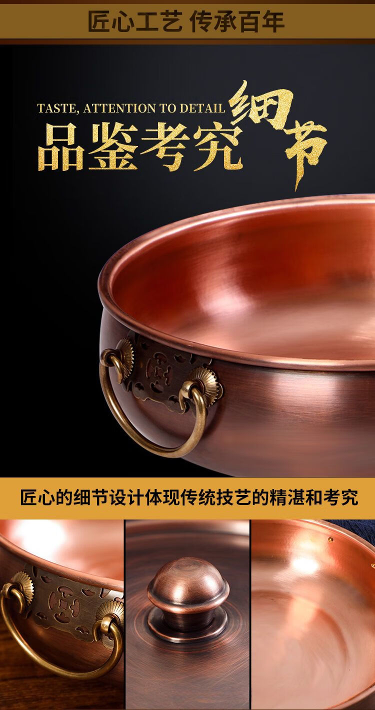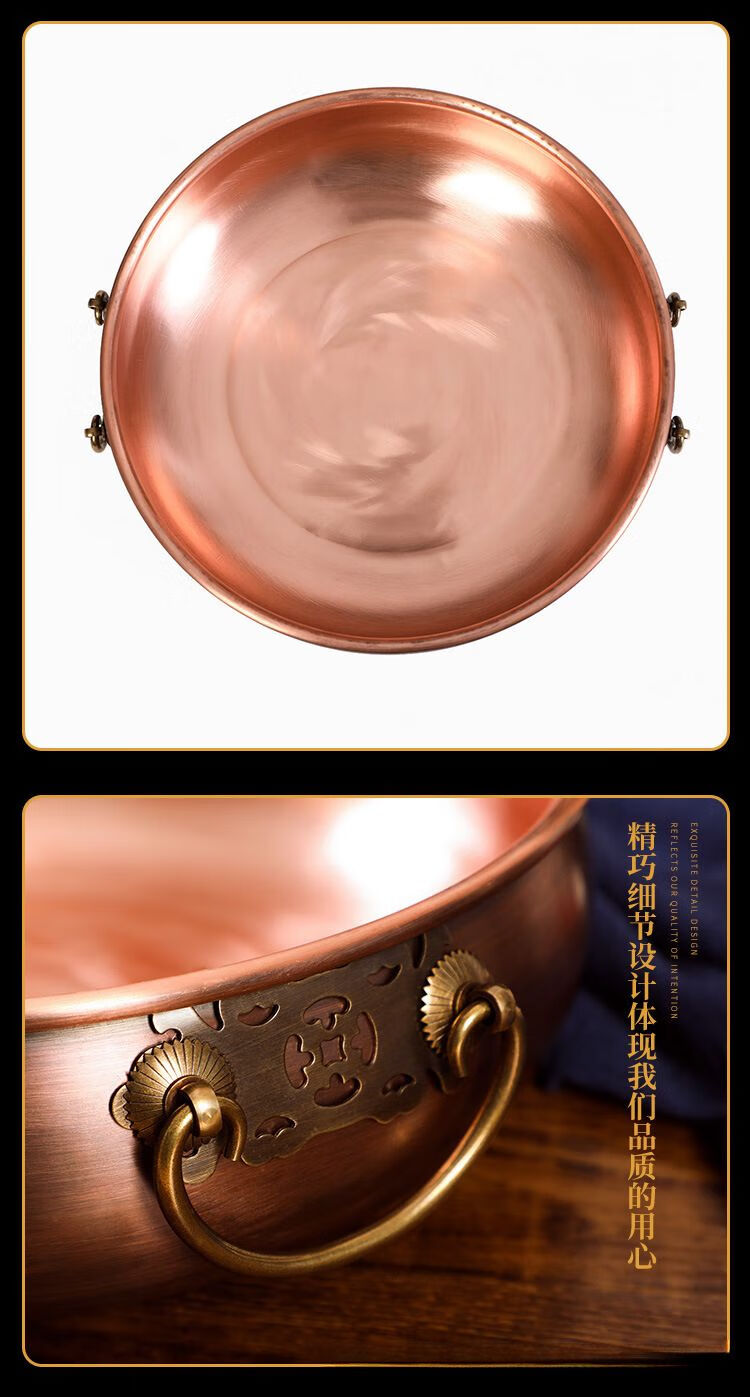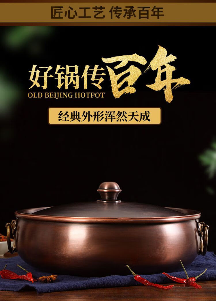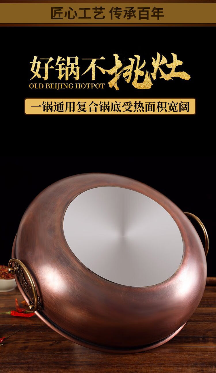 • 商品名称:瑾宇铜火锅电磁炉家用平底盆老北京风味紫铜火锅饭店涮羊肉牛肉q 清汤锅 32cm/个