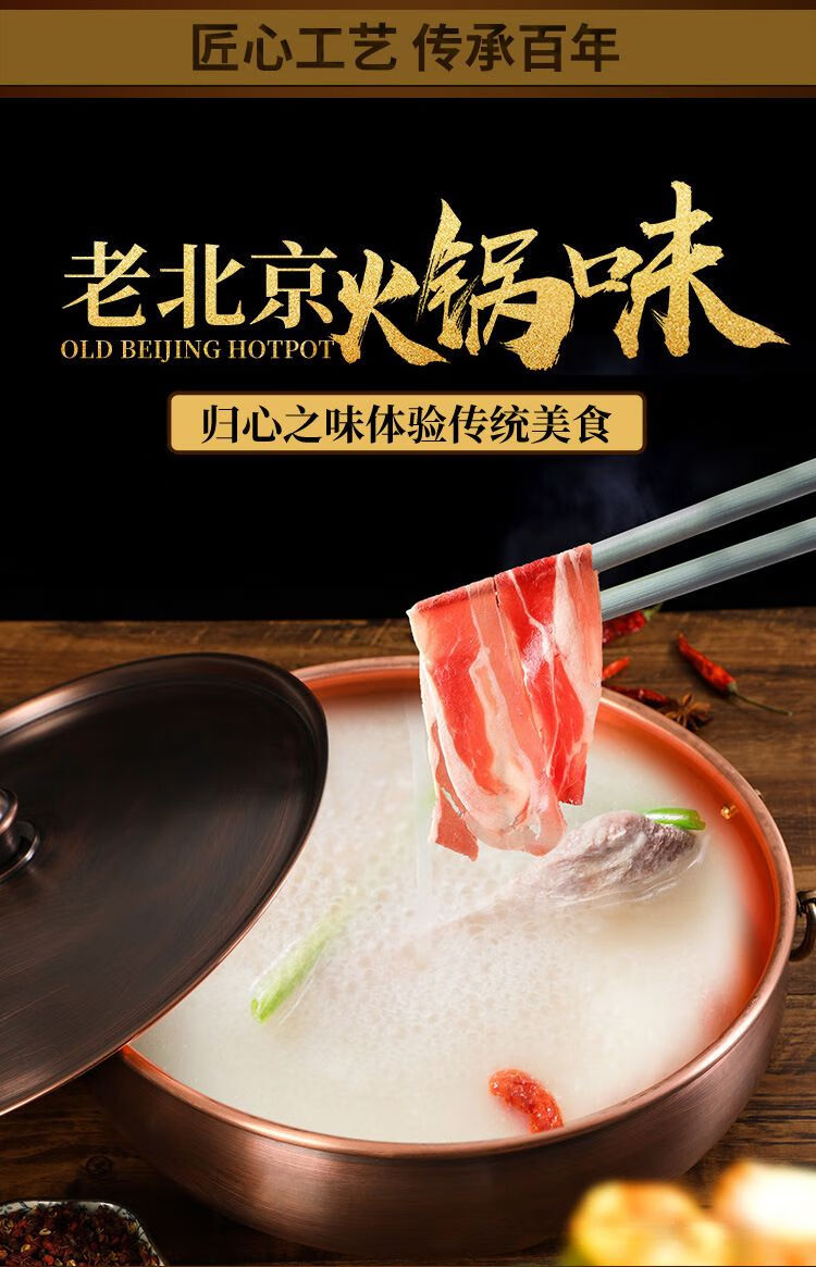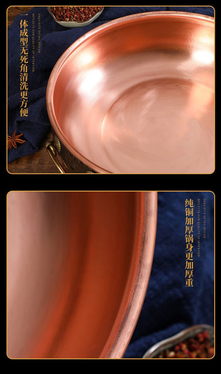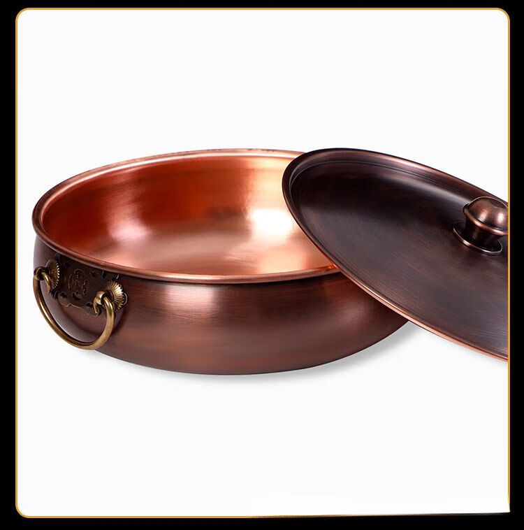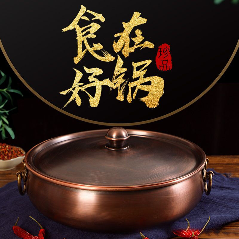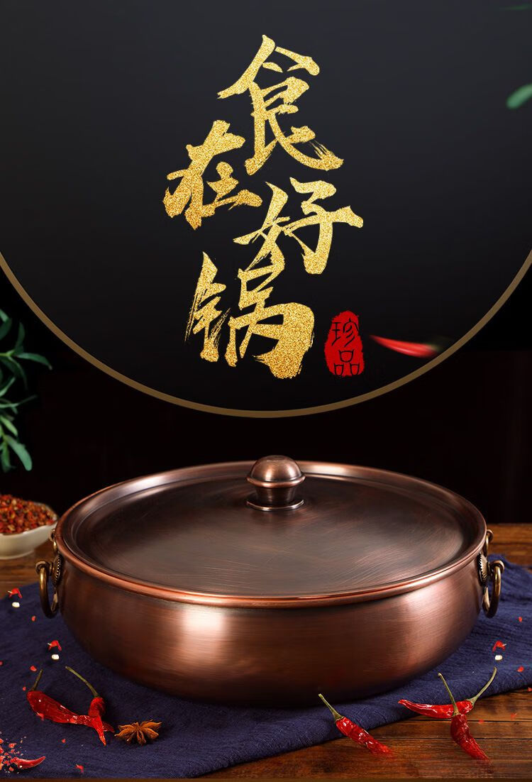 • 商品名称:瑾宇铜火锅电磁炉家用平底盆老北京风味紫铜火锅饭店涮羊肉牛肉q 清汤锅 32cm/个