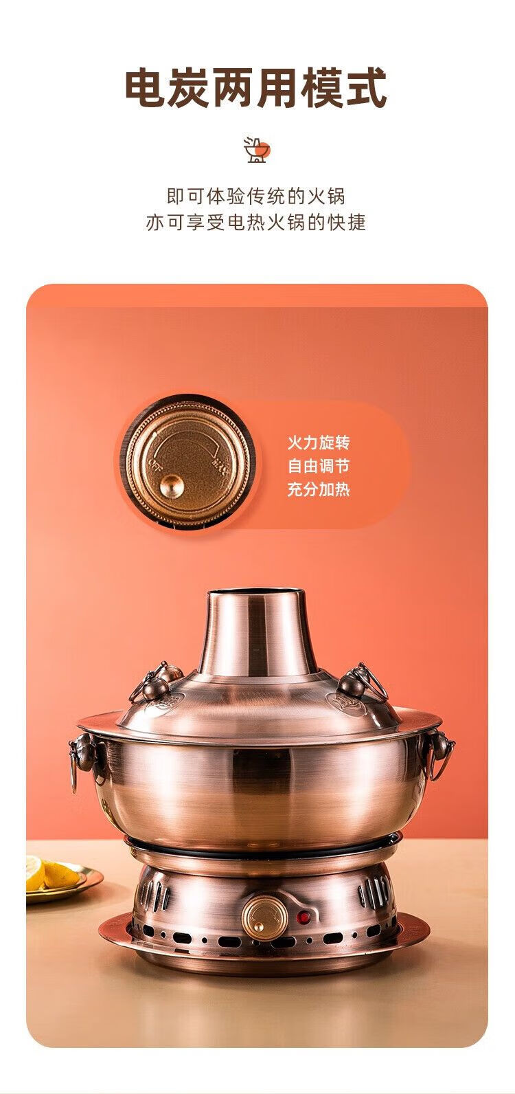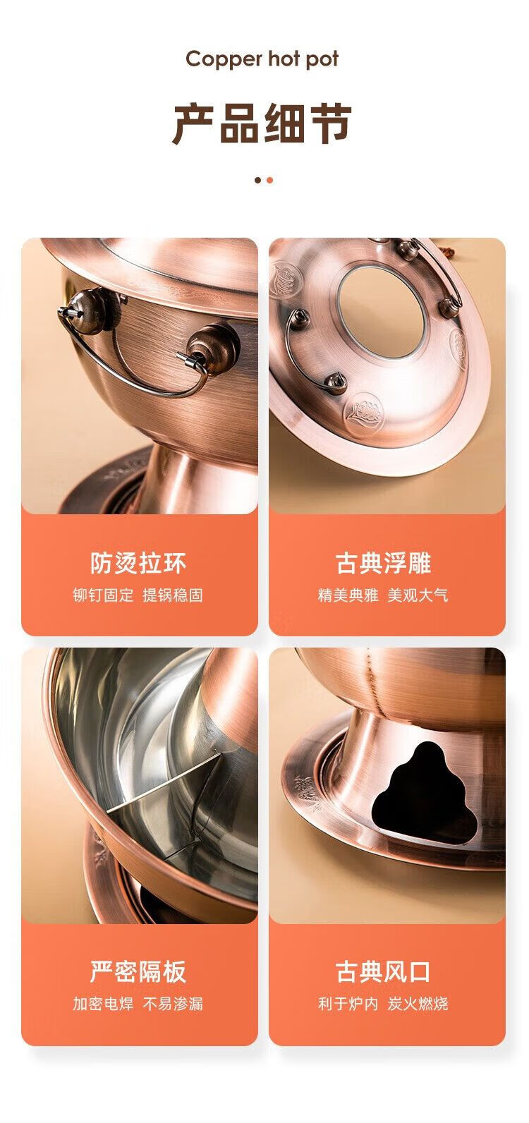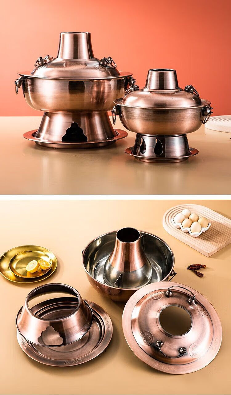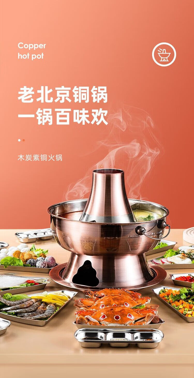 商品名称: 求巧仿铜火锅老北京涮羊肉火锅老式电碳两用紫铜火锅家用打边炉涮羊 32CM紫铜【清汤锅】适合4-6人/个
