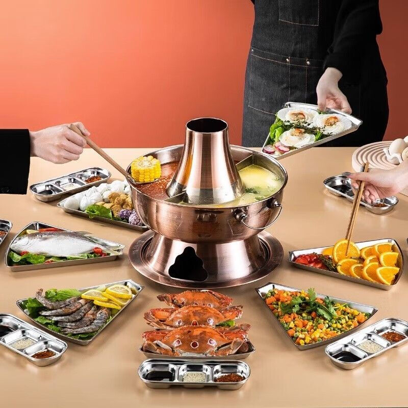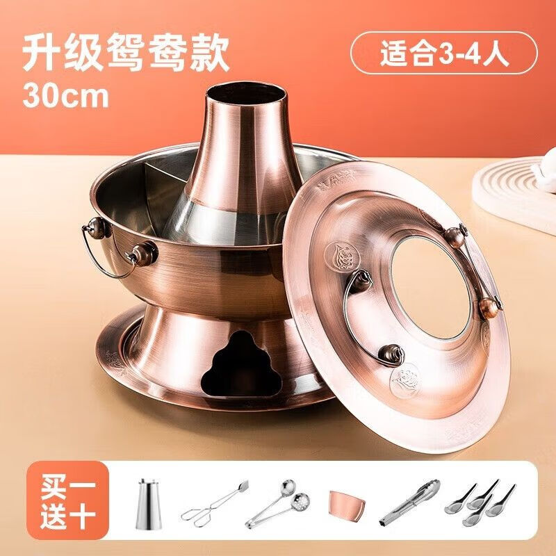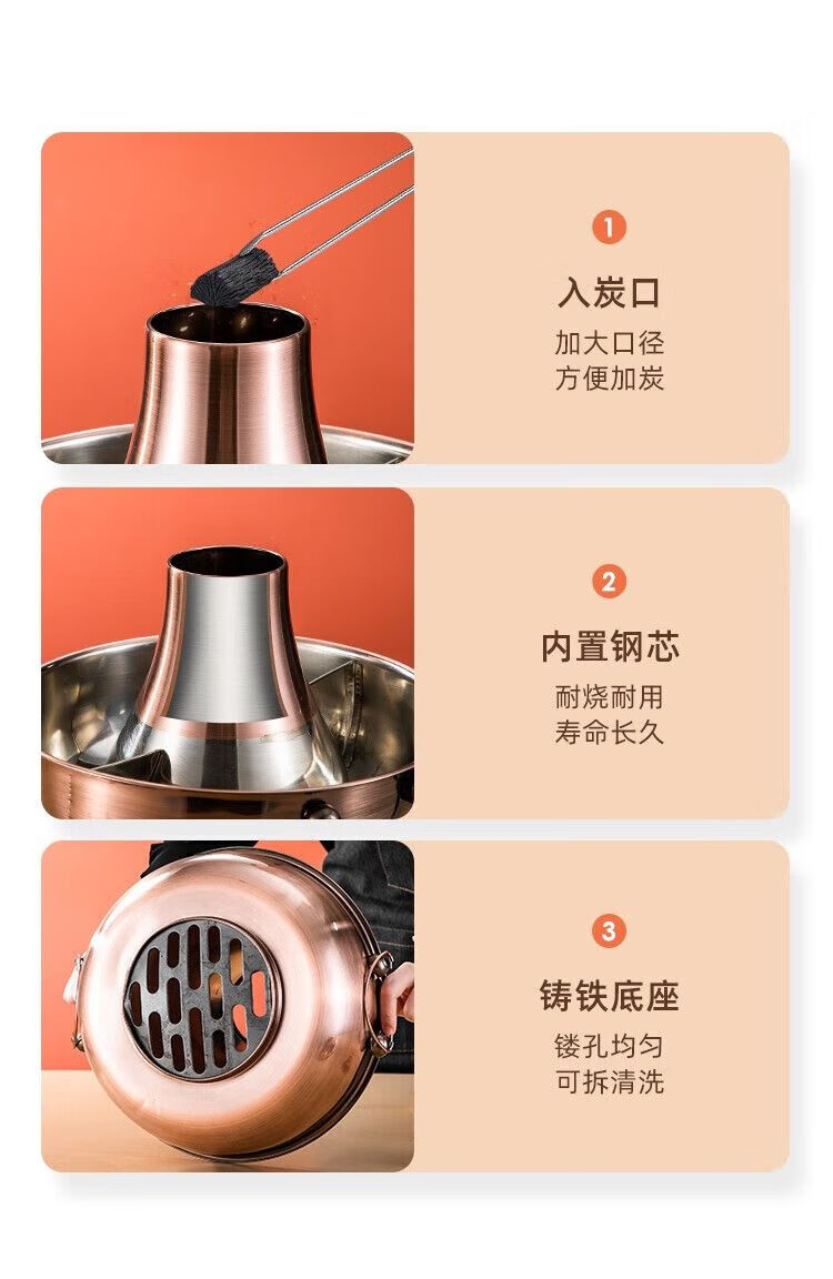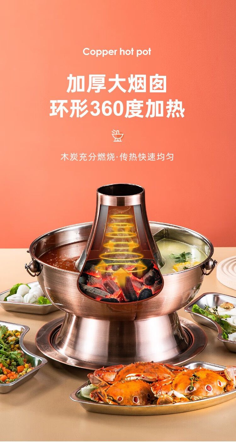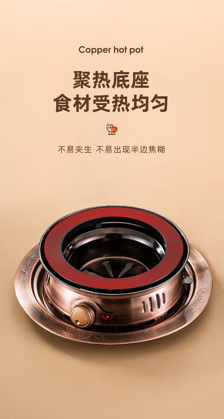 商品名称: 求巧仿铜火锅老北京涮羊肉火锅老式电碳两用紫铜火锅家用打边炉涮羊 32CM紫铜【清汤锅】适合4-6人/个