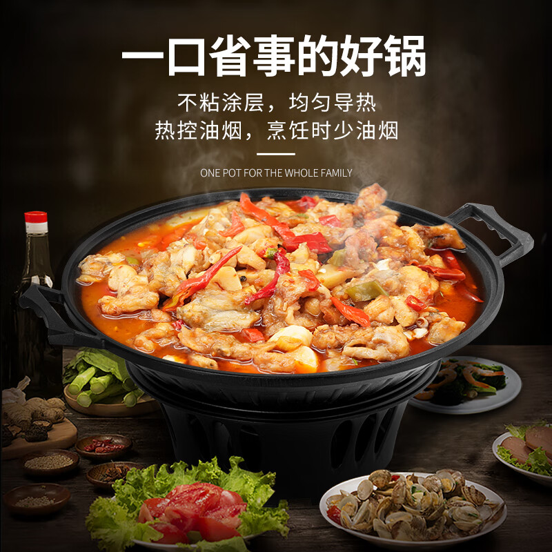 商品名称: CD厨易达铝制双耳干锅酒精炉明火通用 中号26cm锅+酒精炉套装 黑色 ZHCYD005/套