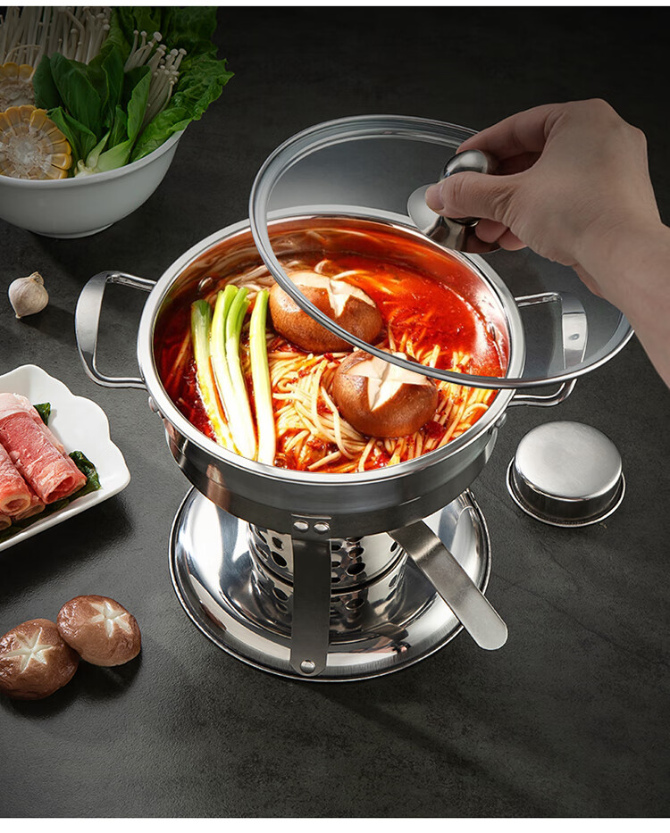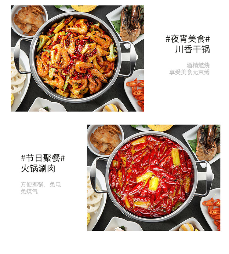 • 商品名称:美厨(maxcook)304不锈钢火锅 酒精炉小火锅干锅固液体通用 配火锅勺16cm MCT762 304不锈钢火锅/套