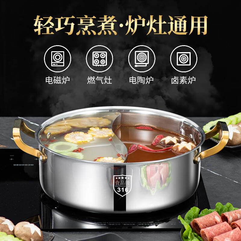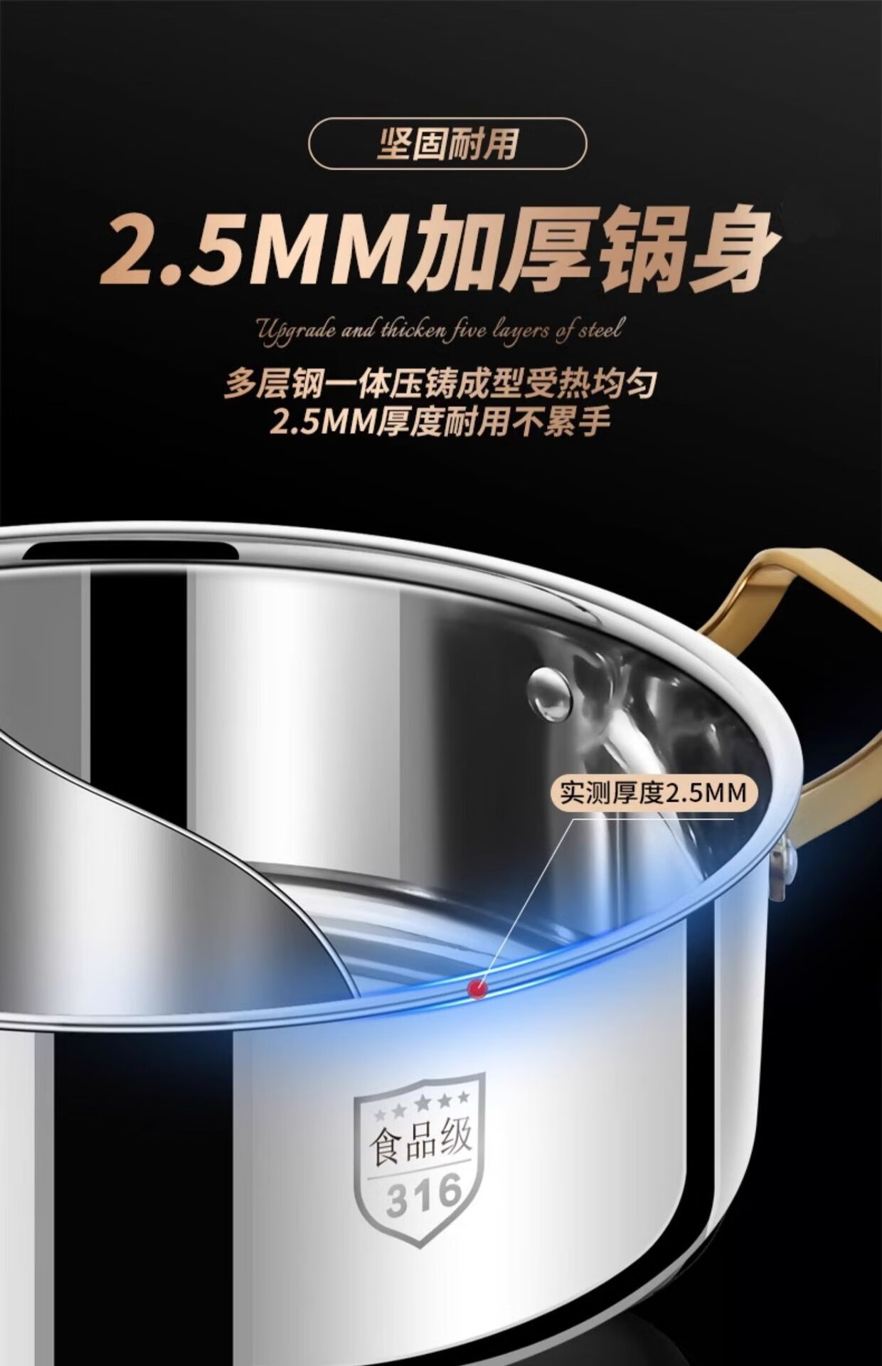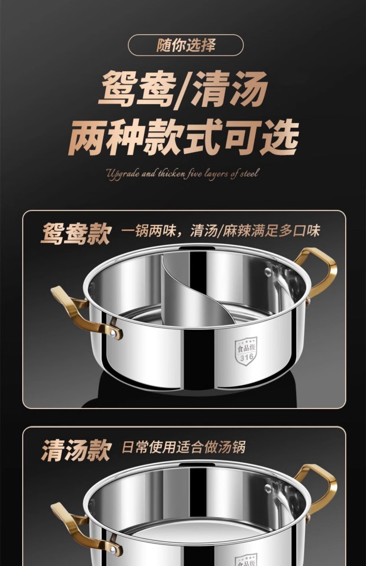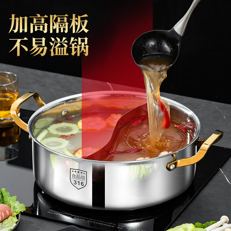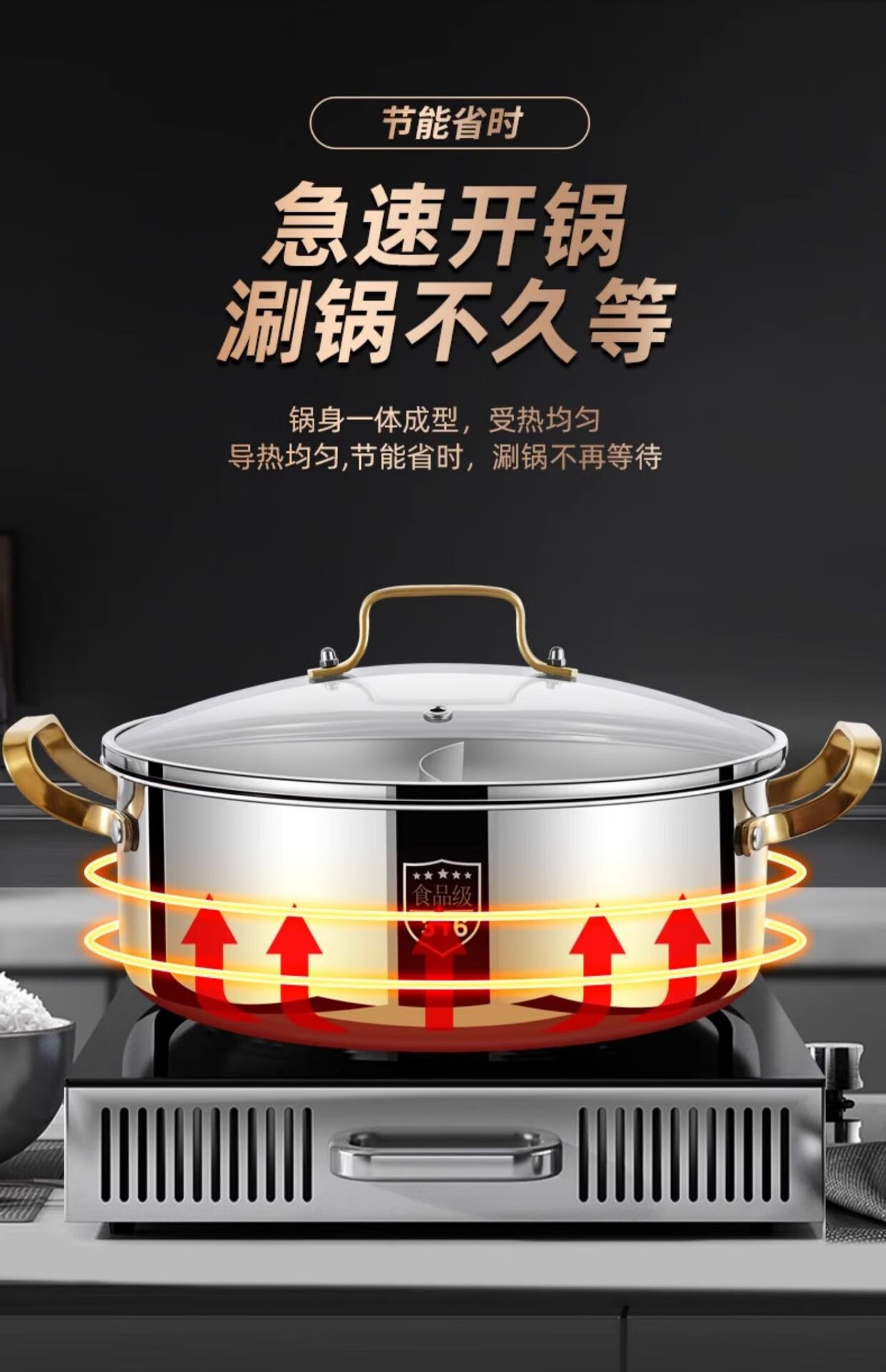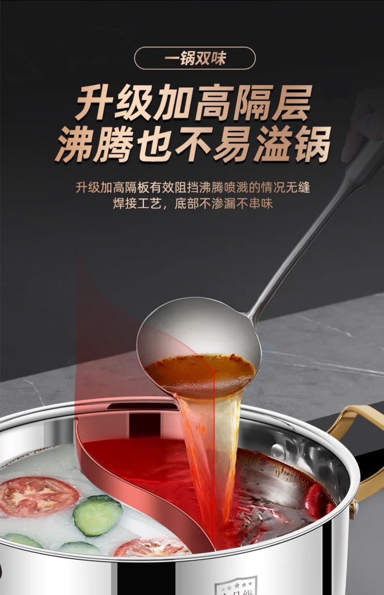 • 商品名称:智星辉316不锈钢鸳鸯锅一体成型商用大容量直角不串味火锅电磁炖锅30cm 30cm(4-6人使用)/个