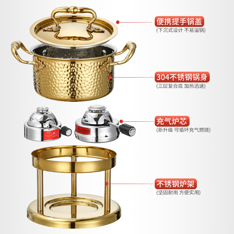 • 商品名称:希耀 304不锈钢充气小火锅酒精炉瓦斯炉小火锅定制 60分钟炉芯 60分钟炉芯/个