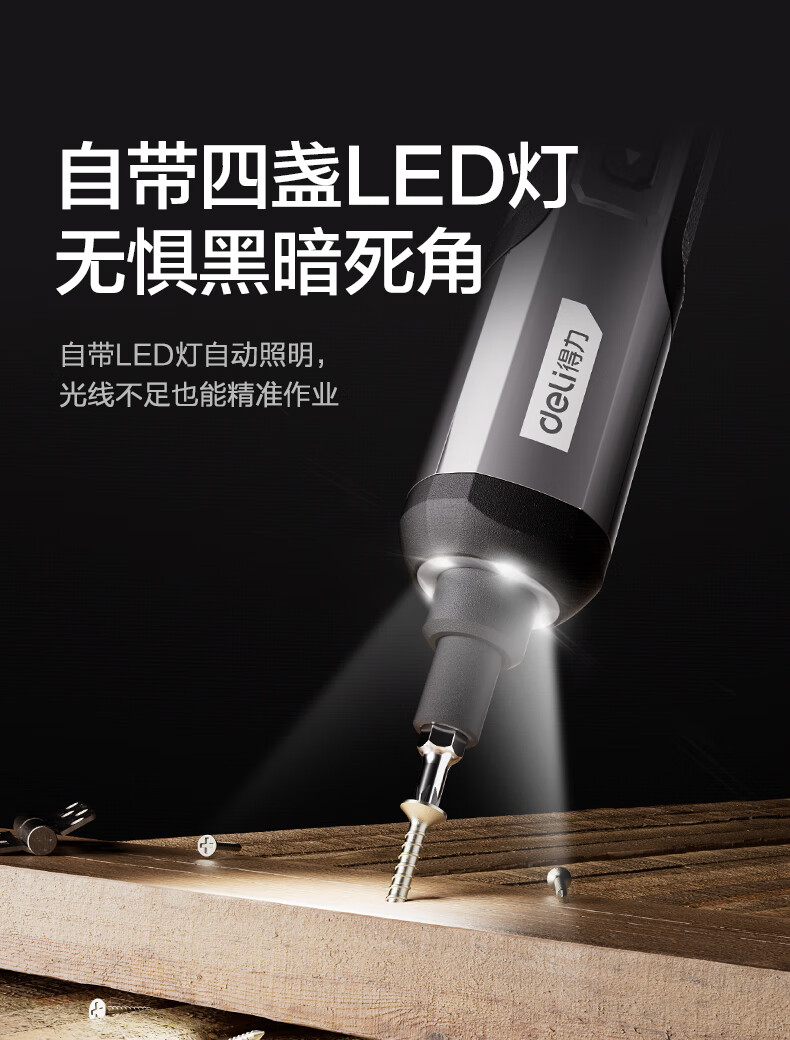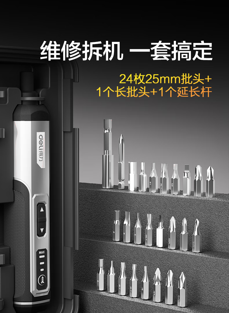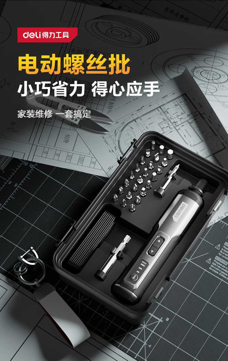 五金/工具  > 电动工具  > 电动螺丝批  >  得力/deli  >  得力电动螺丝刀充电式家用小型迷你电动螺丝起子带25批头套装 DL-DP04-2B2/套