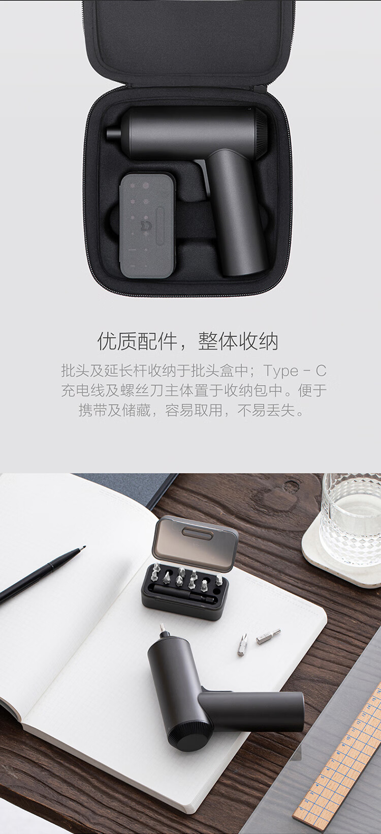 包装清单: USB Type-C充电线*1 批头及收纳盒*1 收纳包*1 工具主体*1