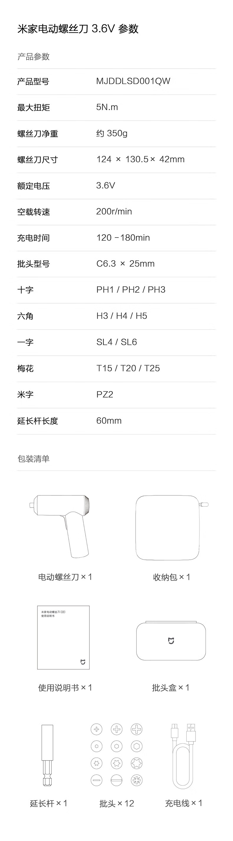商品名称: 米家小米电动螺丝刀多功能锂电池手持电动改锥工具 MJDDLSD001QW/盒