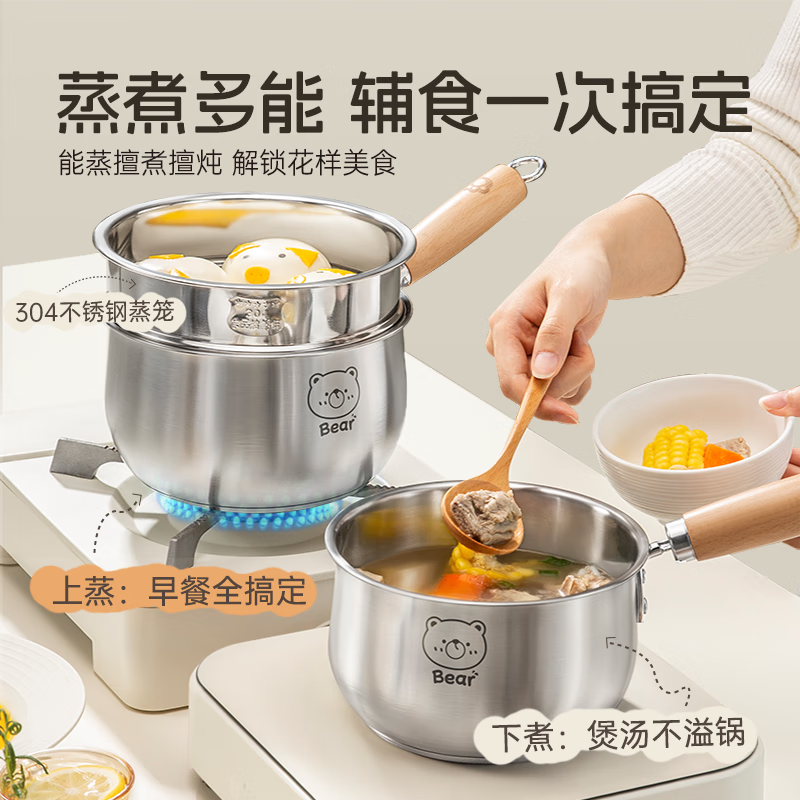 商品名称: 双枪316L不锈钢小奶锅辅食锅汤锅泡面蒸锅燃气电磁炉16cm带盖带蒸笼 DG10114/个