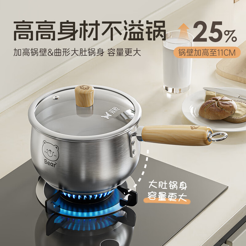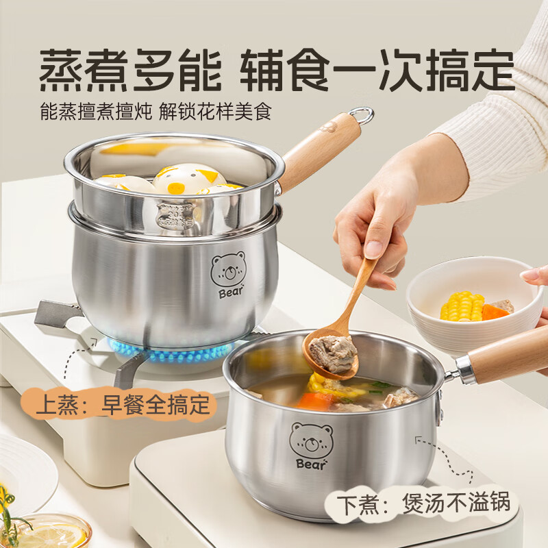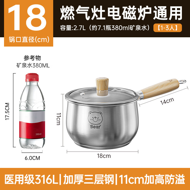 双枪(Suncha)316L不锈钢小奶锅辅食锅汤锅泡面蒸锅燃气电磁炉18cm带盖 DZ33615/片