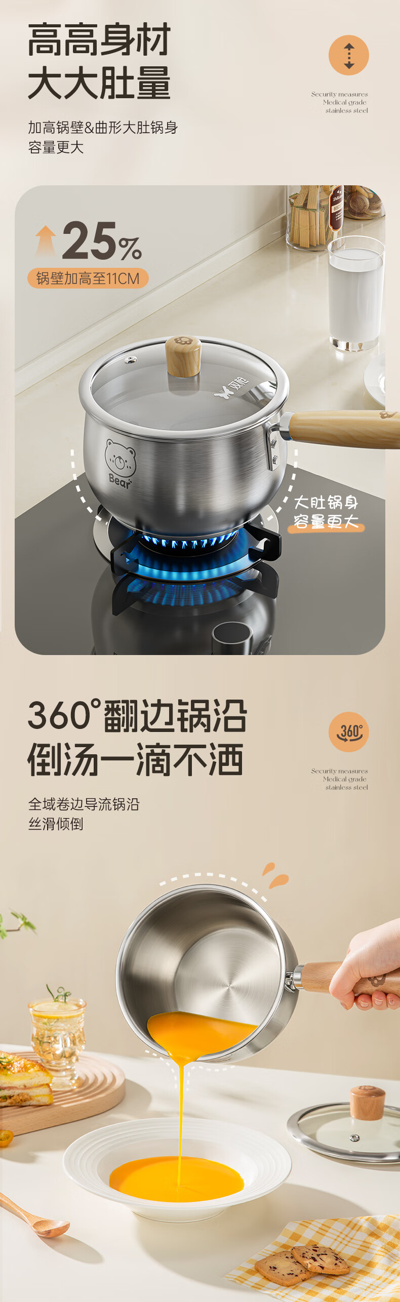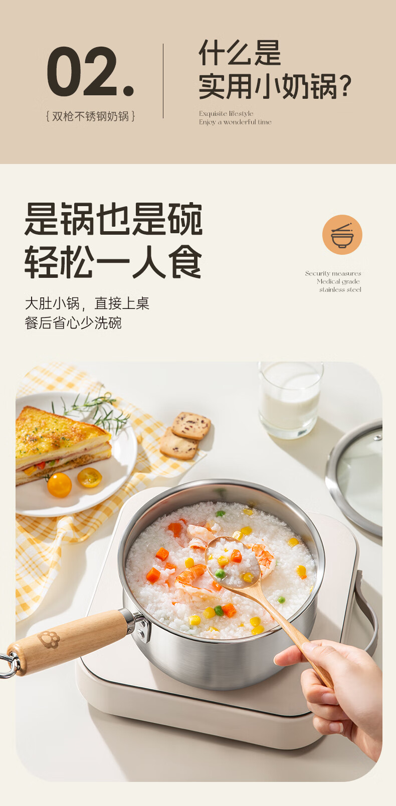 • 商品名称:双枪(Suncha)316L不锈钢小奶锅辅食锅汤锅泡面蒸锅燃气电磁炉18cm带盖 DZ33615/片