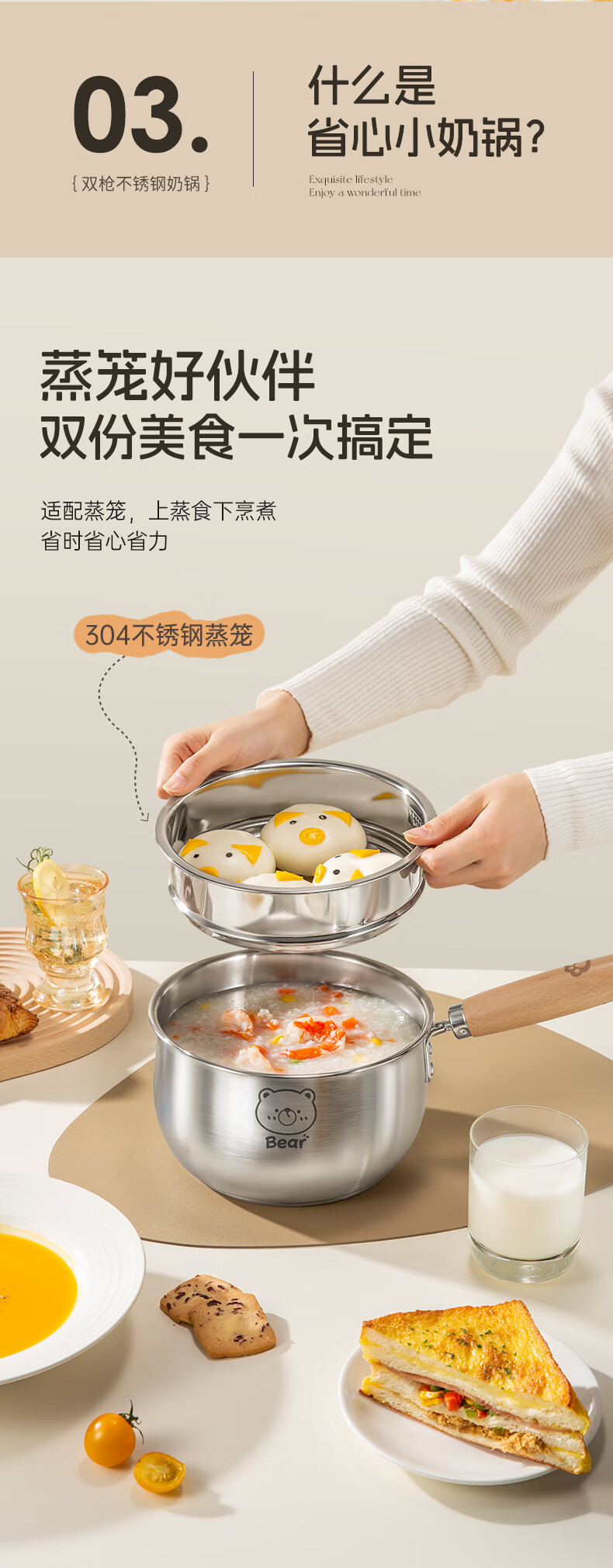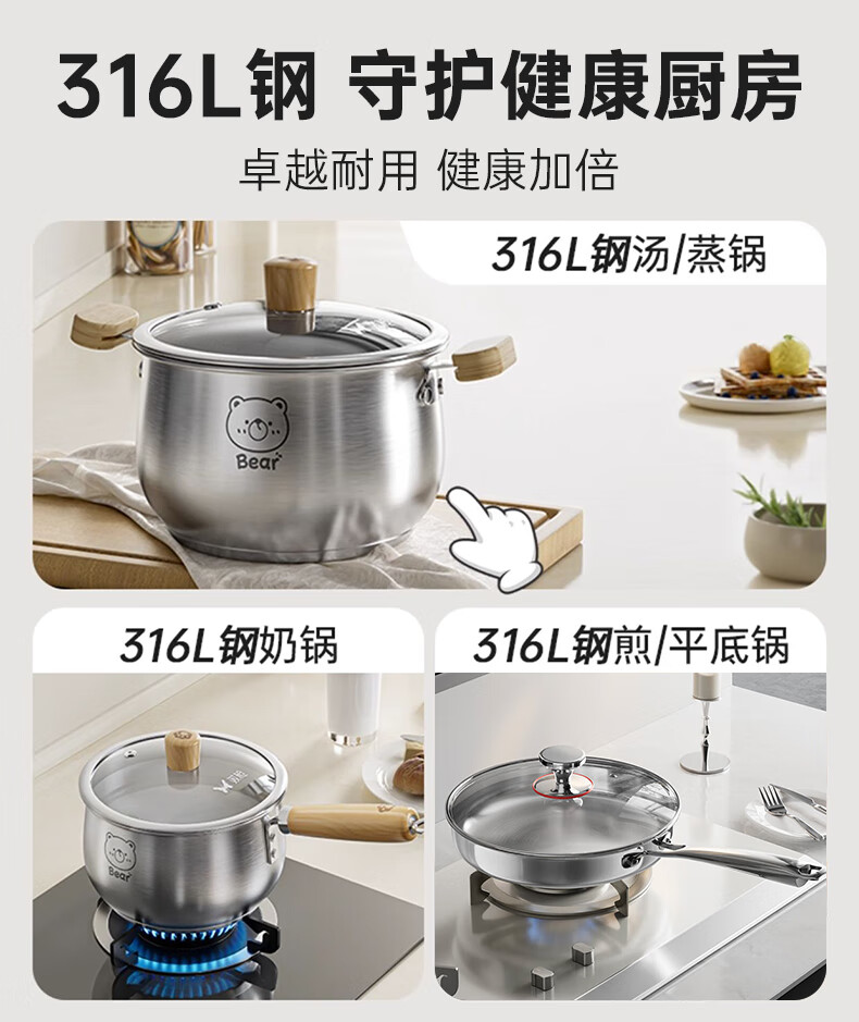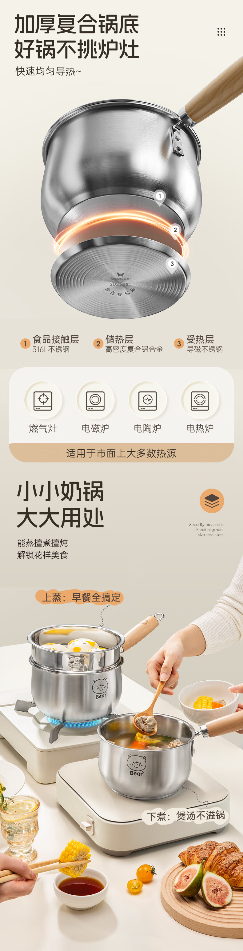 包装清单: 316L奶锅 带盖带蒸笼