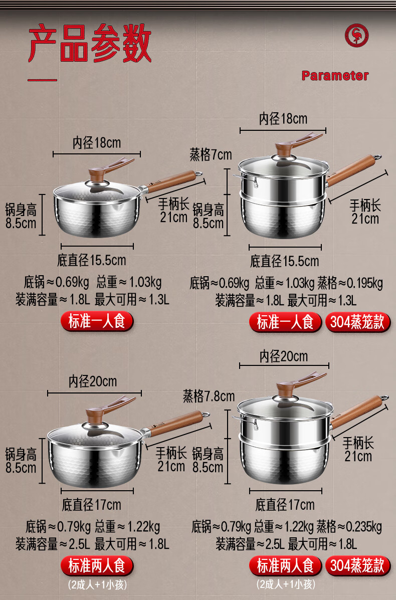 • 商品名称:三四钢雪平锅内层316L不锈钢奶锅辅食小汤锅泡面煮锅20cm食品级一体成型 38121 御厨316L雪平锅:20cm带蒸笼/个