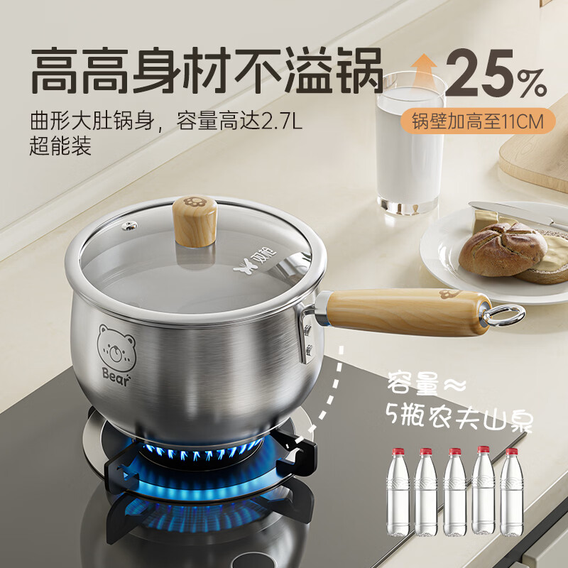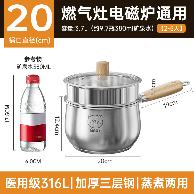 商品名称: 双枪奶锅 316L加厚不锈钢婴儿宝宝辅食小奶锅汤锅蒸煮一体带蒸笼 20cm DZ34512/片