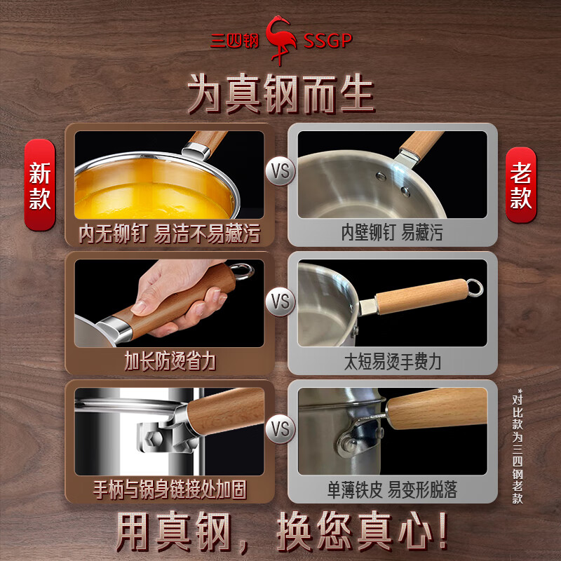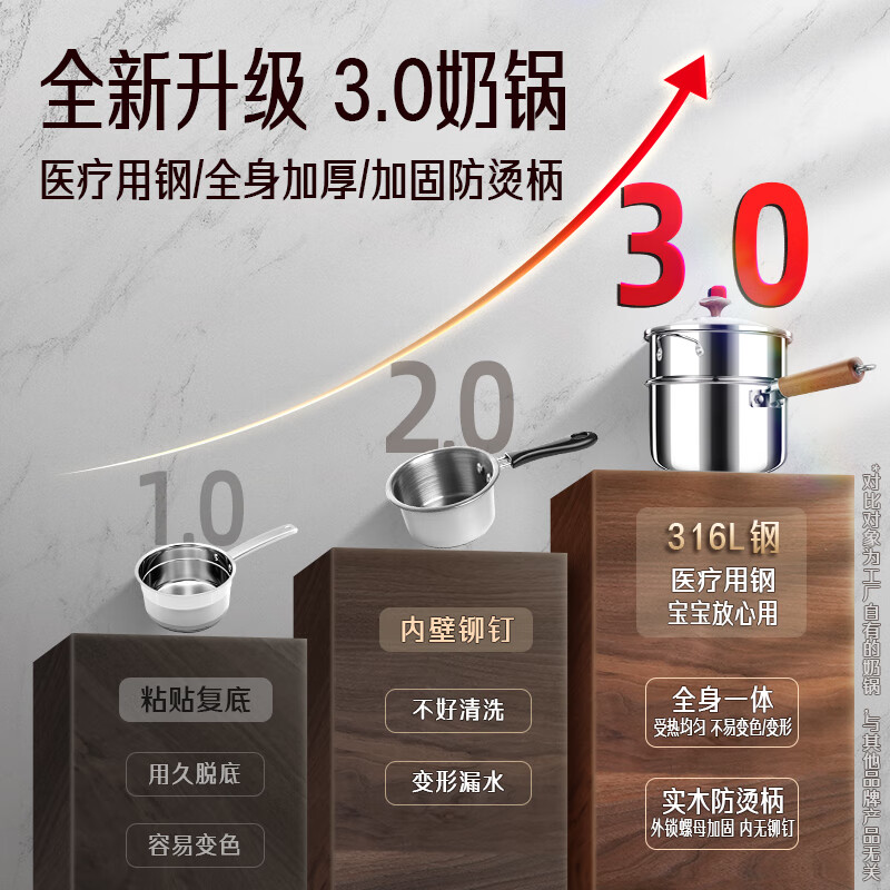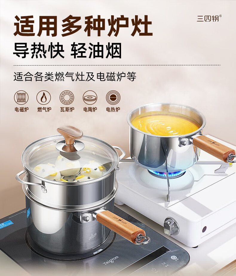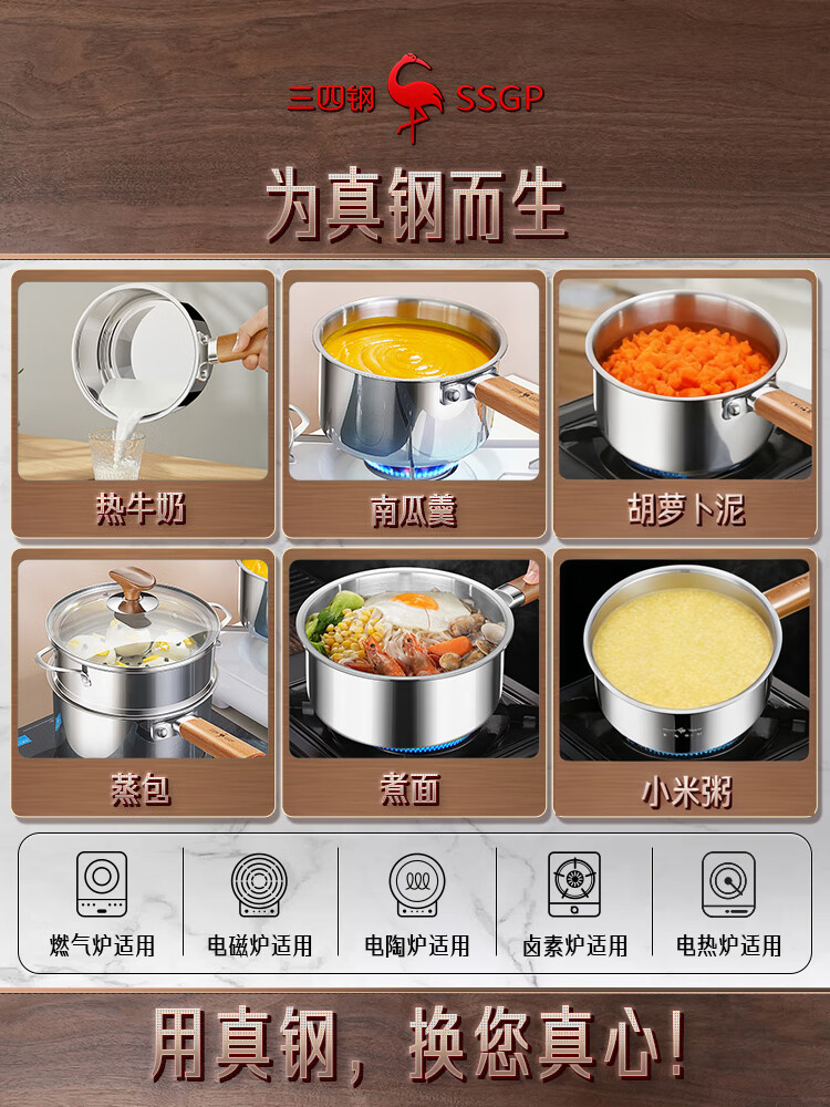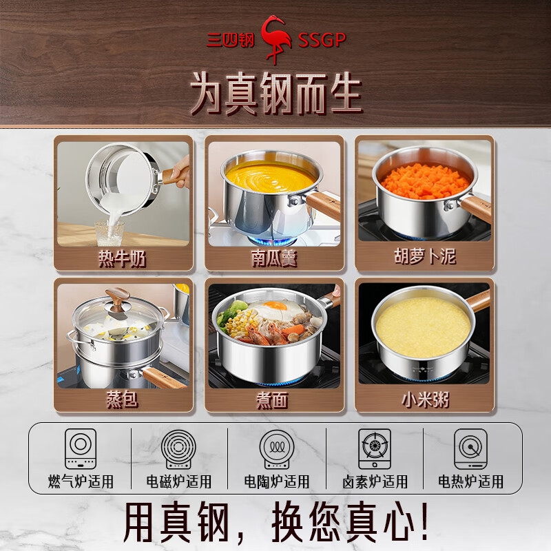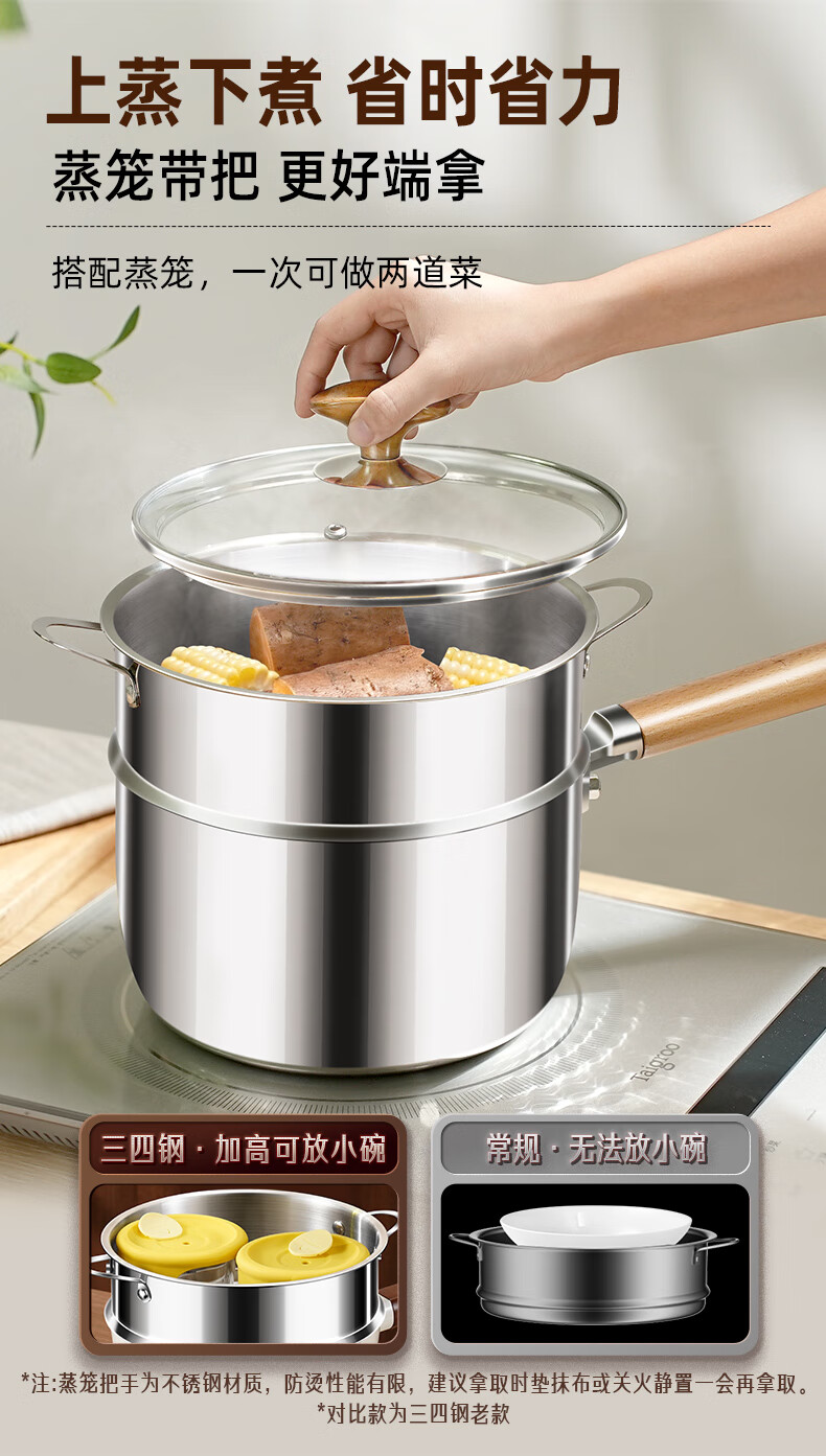 商品名称: 三四钢®奶锅辅食锅316不锈钢小奶锅食品级一体成型婴儿专用宝宝蒸煮锅 28908 柏林经典316L奶锅:18cm加厚款带蒸格/个