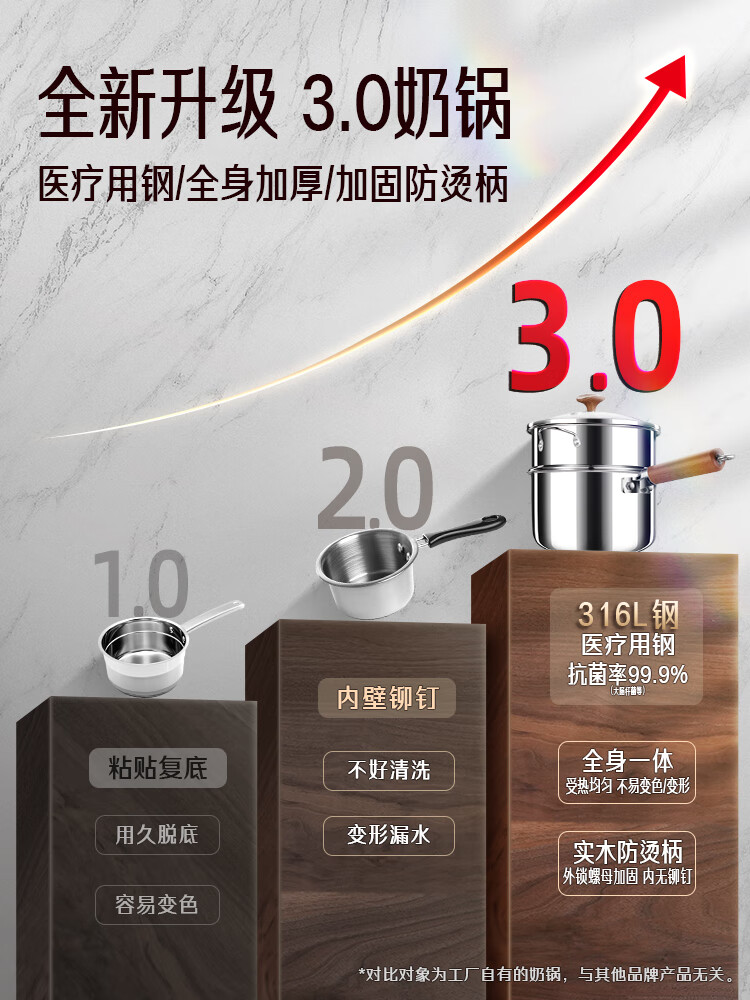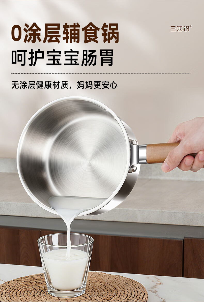 • 商品名称:三四钢®奶锅辅食锅316不锈钢小奶锅食品级一体成型婴儿专用宝宝蒸煮锅 28908 柏林经典316L奶锅:18cm加厚款带蒸格/个