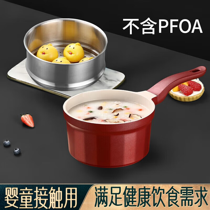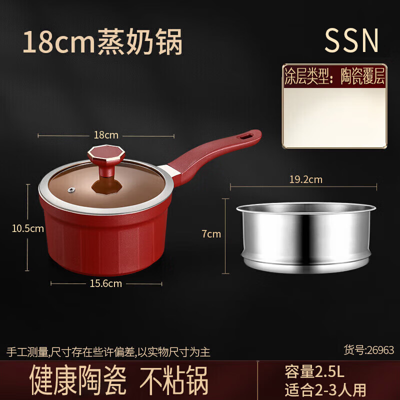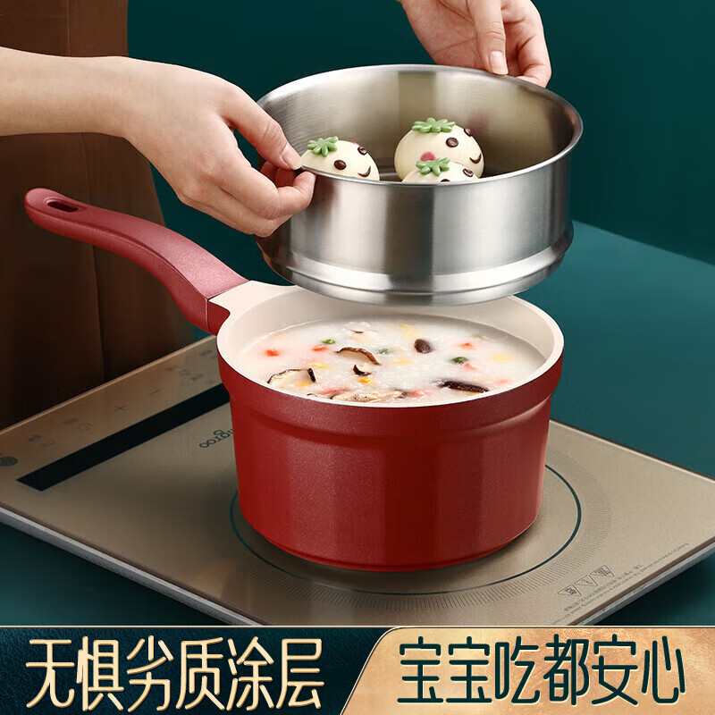 商品名称: SSN宝宝婴儿辅食锅陶瓷奶锅不粘锅煮奶锅小奶锅蒸煮一体热奶煮粥小锅 W26963/个
