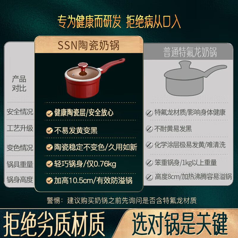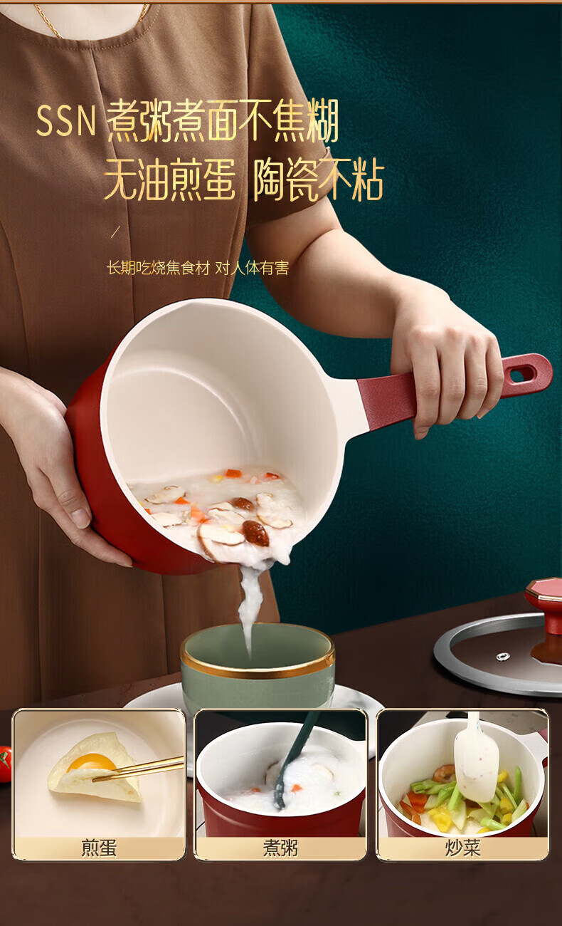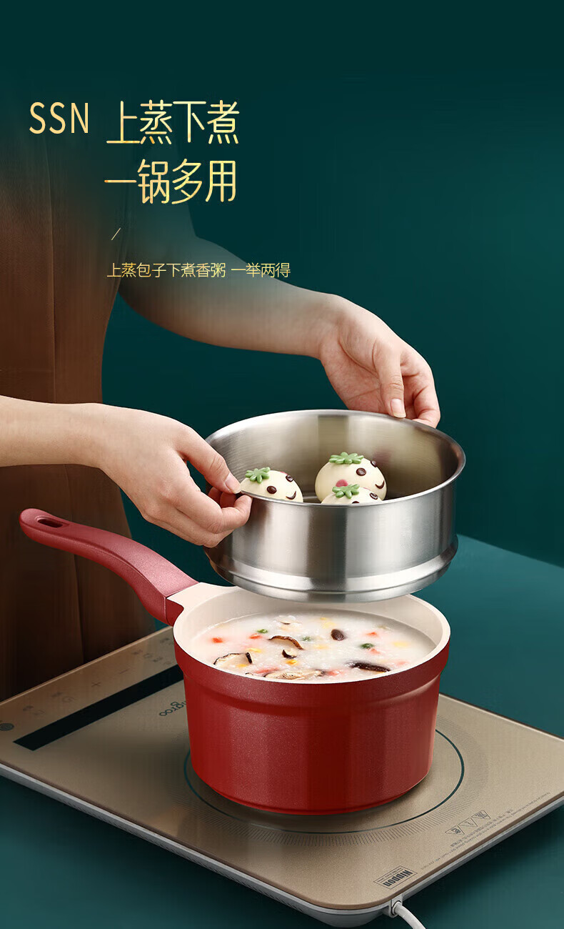 • 商品名称:SSN宝宝婴儿辅食锅陶瓷奶锅不粘锅煮奶锅小奶锅蒸煮一体热奶煮粥小锅 W26963/个