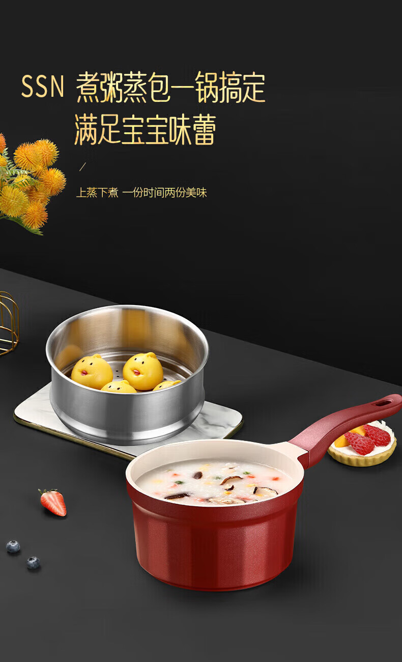 厨具  > 烹饪锅具  > 奶锅  >  SSN  >  SSN宝宝婴儿辅食锅陶瓷奶锅不粘锅煮奶锅小奶锅蒸煮一体热奶煮粥小锅 W26963/个