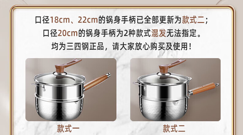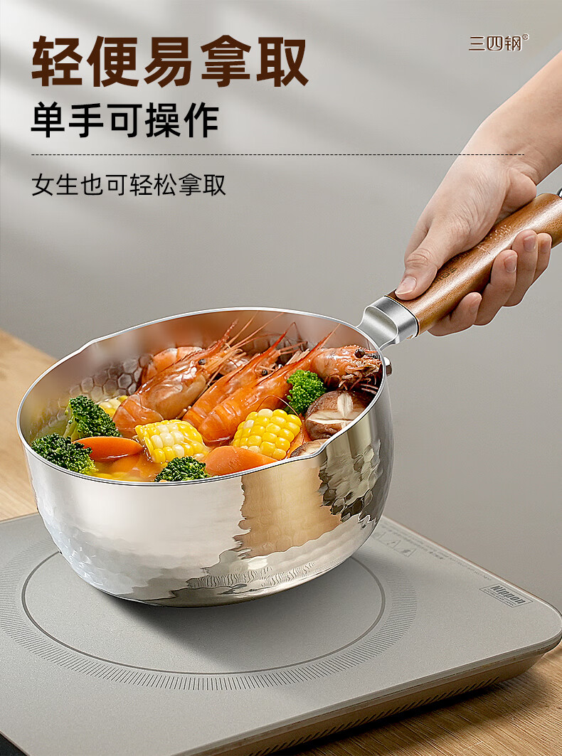 • 商品名称:三四钢雪平锅内层316L不锈钢22cm日式奶锅带蒸笼食品级无涂层煮面 38123 38123 御厨316L雪平锅:22cm带蒸笼/个