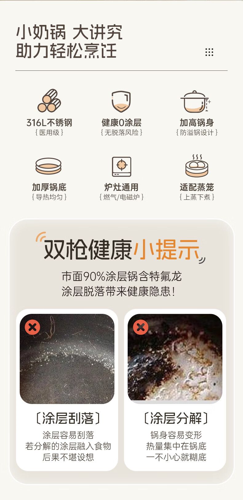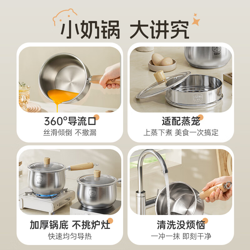 厨具  > 烹饪锅具  > 奶锅  >  双枪/Suncha  >  双枪316L不锈钢小奶锅辅食锅汤锅泡面蒸锅燃气电磁炉16cm带盖 DG10114/个