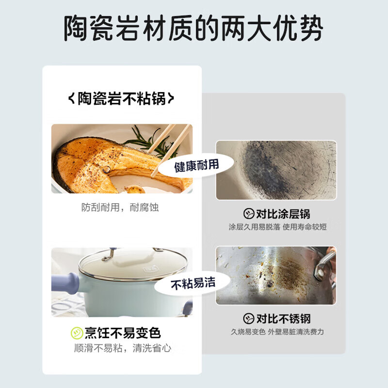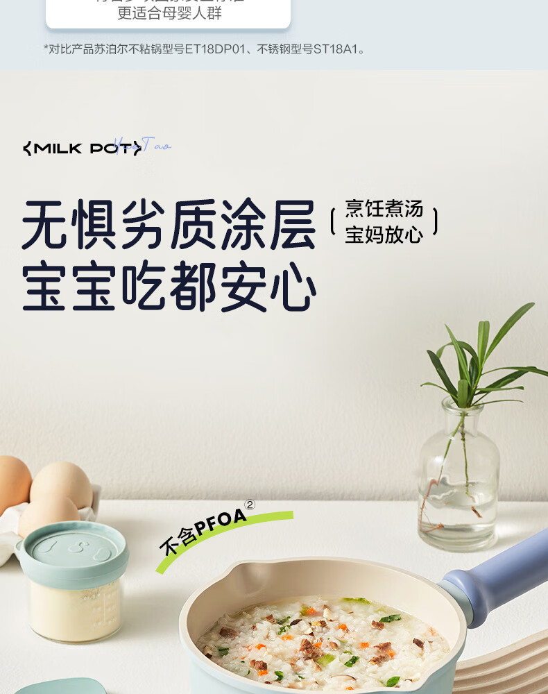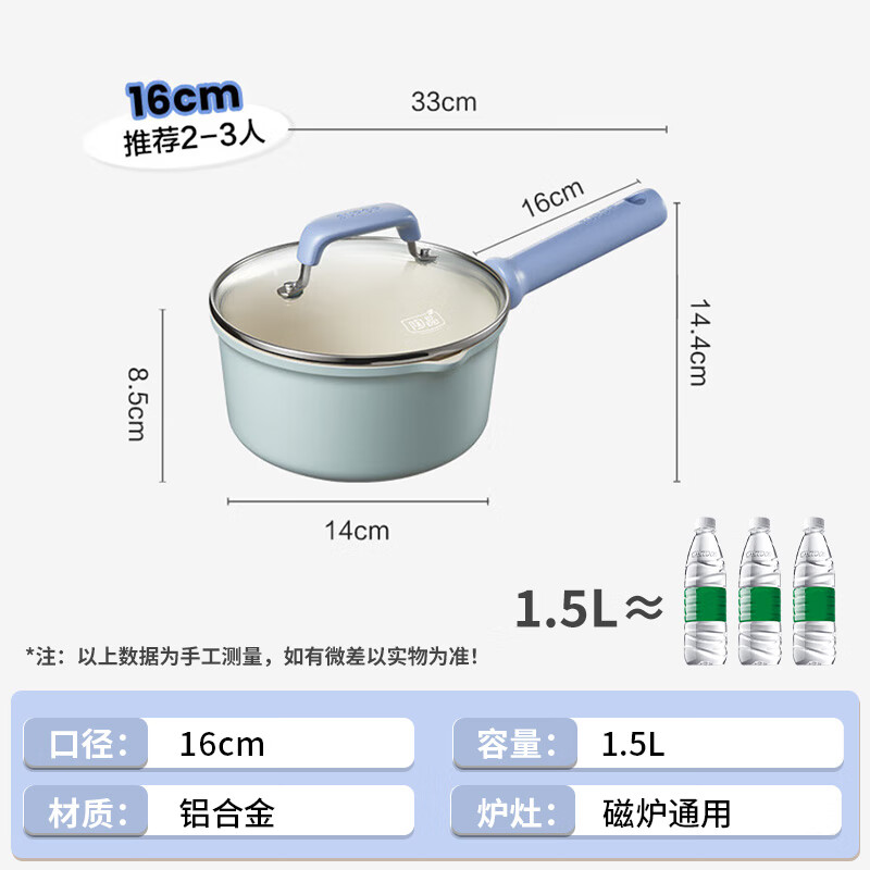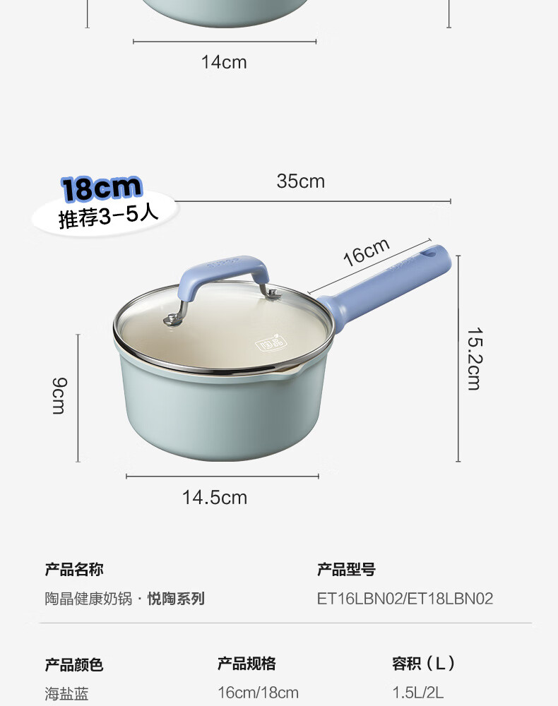 商品名称: 苏泊尔奶锅不粘16cm陶瓷覆层小汤锅煮面热奶辅食锅电磁炉燃气通用 ET16LBN02/个